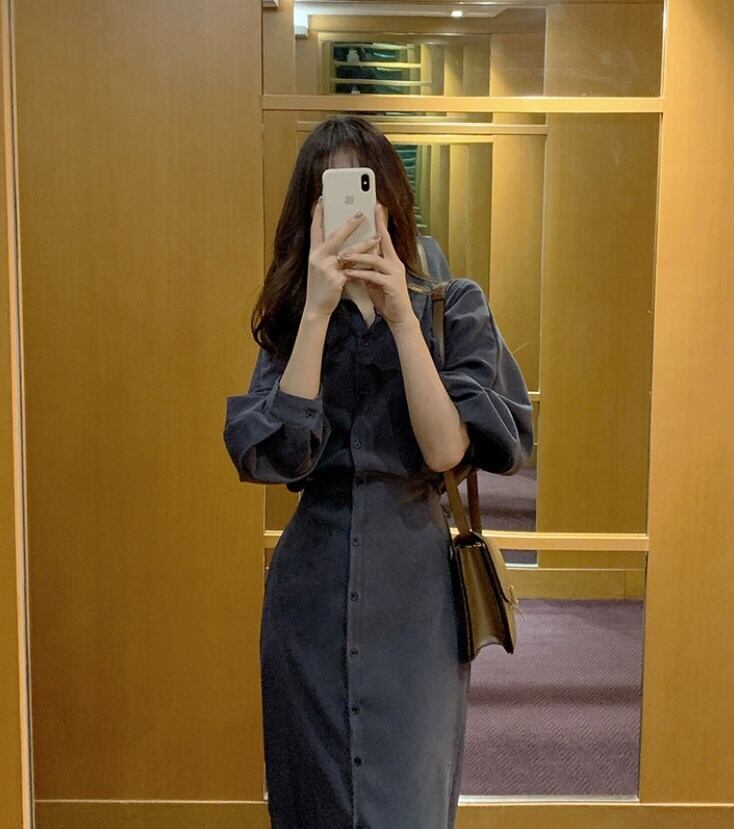 全4色 シャツワンピース ワンピース シャツ ロング ロング丈 ミモレ丈 袖あり ボリューム袖 パフスリーブ 長袖 襟付き 前開き ウエスト絞り 脇留めベルト ウエストマーク ウエストリボン タイトスカート 大人可愛い 大人女子 上品 オシャレ かっこいい シンプル エレガント 無地 女子会 リゾート イベント パーティ 通勤 学生 通学 OL 10代 20代 30代 40代 韓国系 美脚 フリーサイズ 黒 ブラック ベージュ ホワイト イエロー グレー