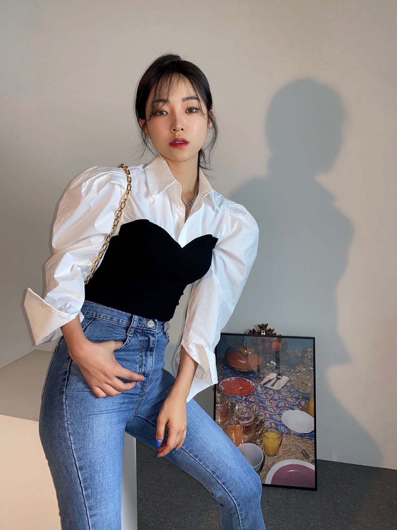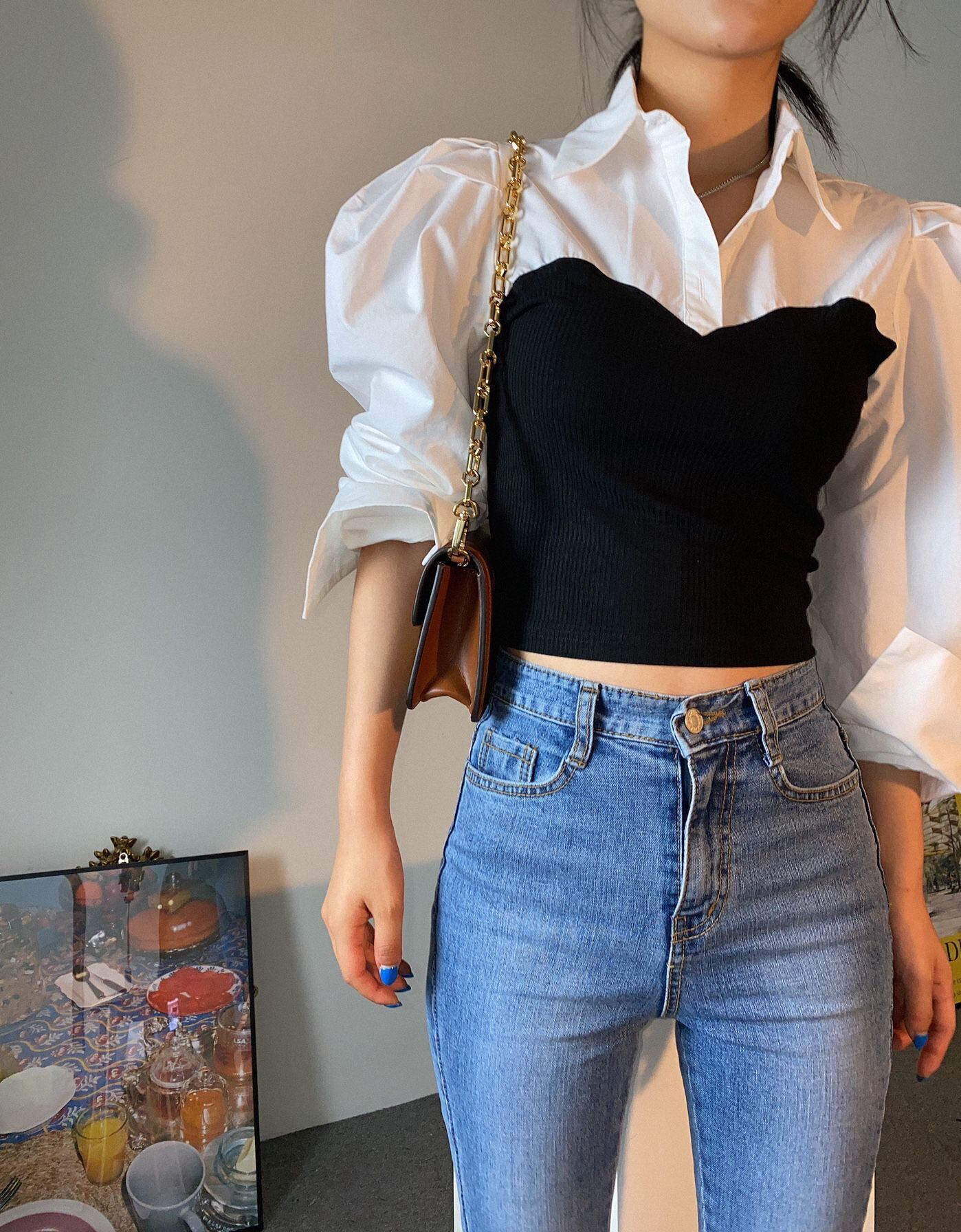トップス ブラウス 重ね着風 シャツ ブ ビスチェデザイン 袖あり 長袖 ボリューム袖 パフスリーブ シャツ ビスチェ 襟付き 切り替えデザイン ドッキング かわいい 大人可愛い きれいめ シンプル カジュアル 上品 おしゃれ お洒落 大人女子 こなれ感 ラブリー キュート ガーリー モード系 エレガント モダン トレンド 韓国 無地 シーズンレス 10代 20代 30代 40代 レディース オフィス OL 通勤 学生 通学 デート お出かけ 女子会 白 ホワイト ブラック 黒