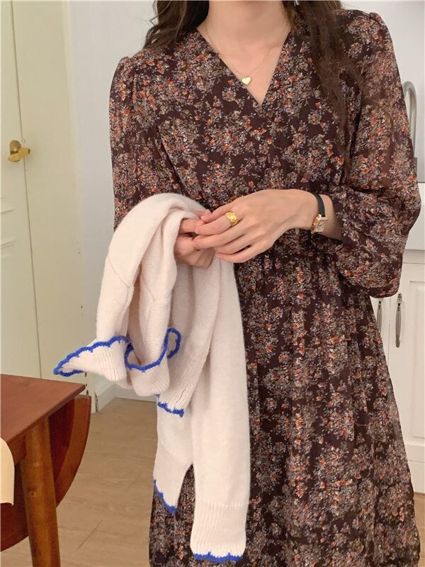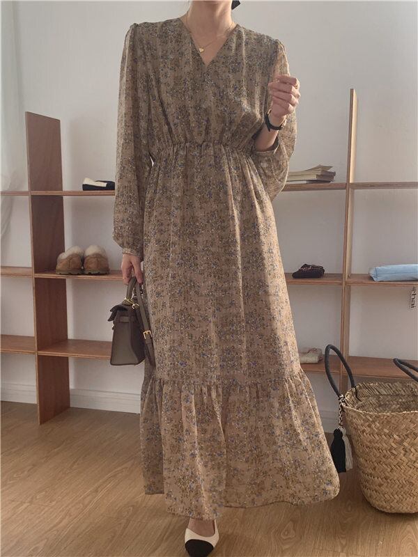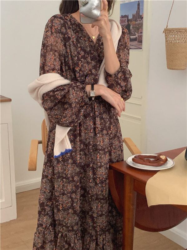 全2色 カシュクールドレス カシュクールワンピース ワンピース ドレス ミモレ ロング 裾フリル 袖あり 9分袖 襟なし Vネック セミフレア フレア Aライン ウエストマーク ウエスト絞り 上品 オシャレ シフォン 透け感 薄手 大人女子 上品 こなれ感 メンズライク ラブリー キュート ルーズ クール エレガント 韓国コーデ 韓国 とろみ感 抜け感 無地 10代 20代 30代 40代 オフィス OL お出かけ 着回し 結婚式 謝恩会 イベント パーティ 食事会 色展開 ベージュ ブラウン