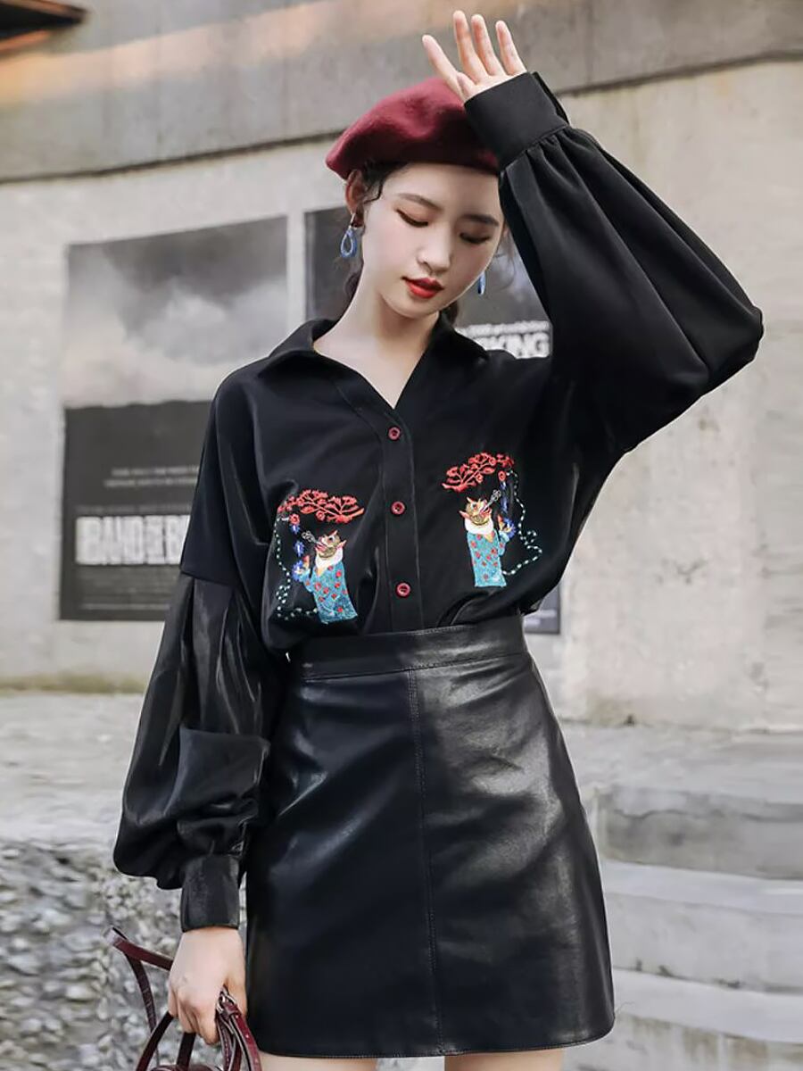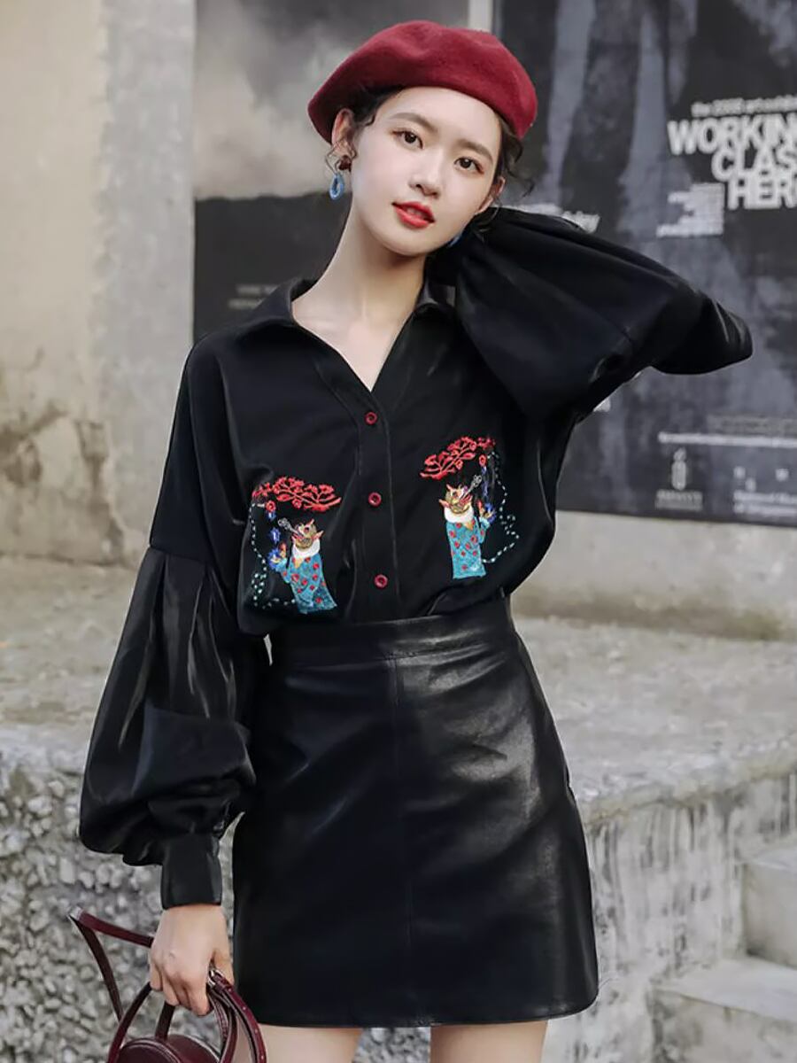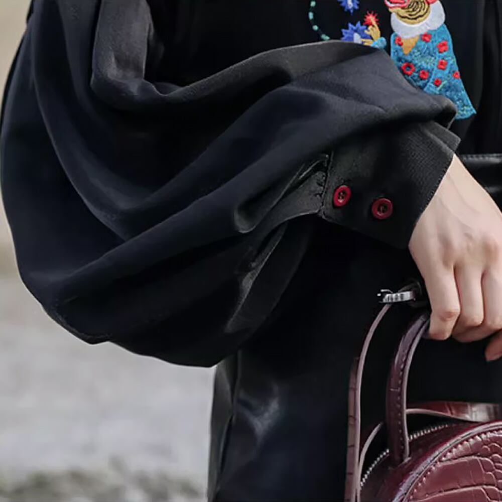 胸元に香港チックでレトロな刺繍がはいったバルーンスリーブのシャツブラウスです。