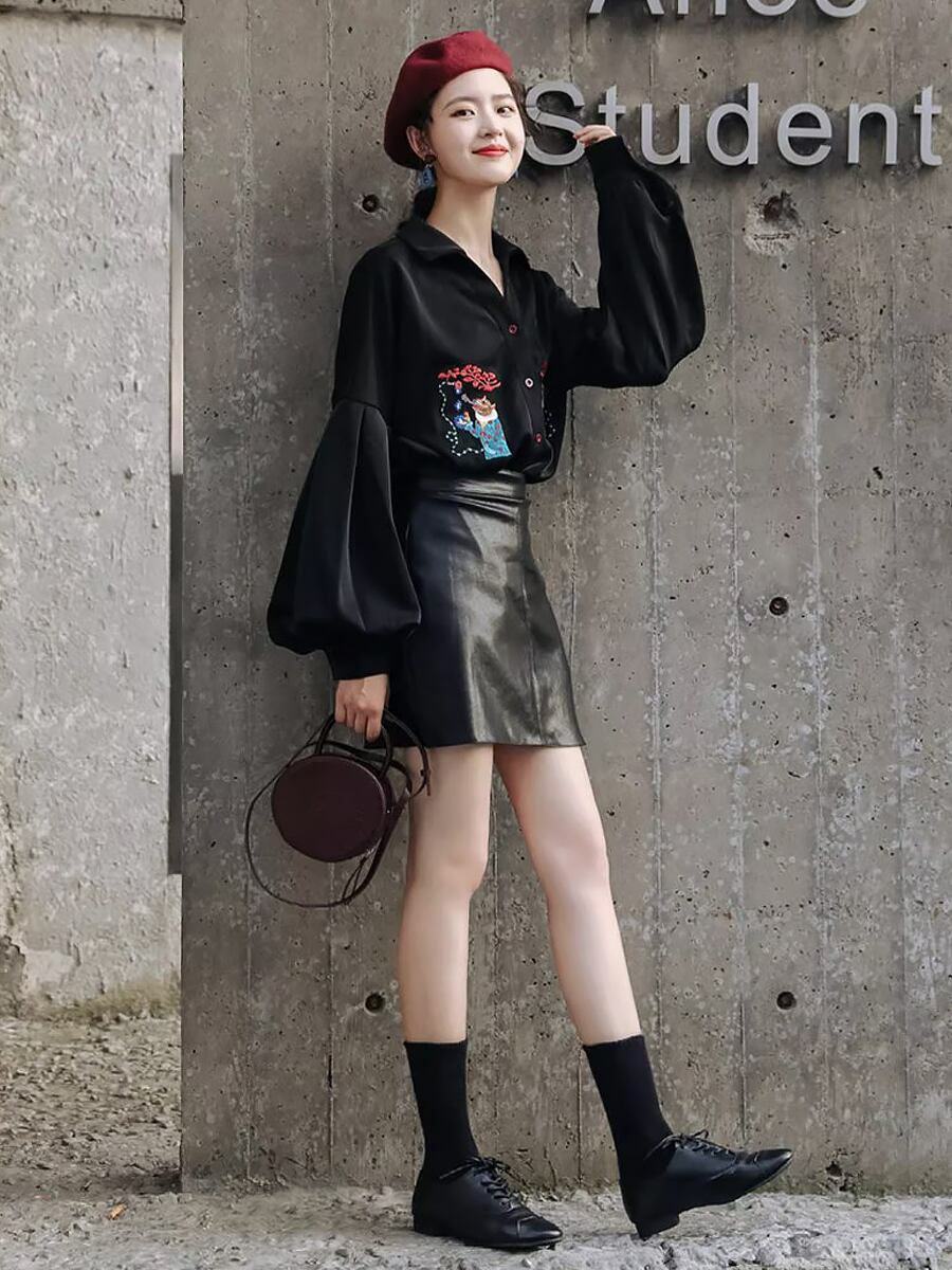 レトロ刺繍入りダウンバルーンスリーブシャツブラウス ブラック 黒 レトロ クラシカル 刺繍入り ダウンスリーブ バルーンスリーブ パフスリーブ トップス ブラウス 長袖 高見え ポップデザイン フェミニン きちんと感 前開き きれいめ カジュアル 上品 おしゃれ お洒落 こなれ感 個性的 レディース デート お出かけ ドレス イベント オルチャン 韓国コーデ 韓国ファッション