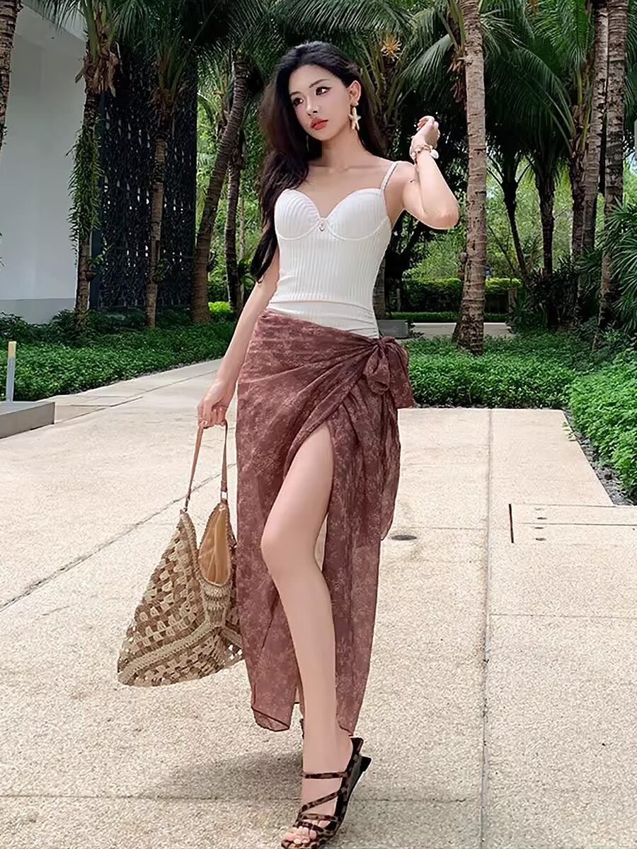2点セット 水着 足まわりフリルワンピース水着+ロングパレオ アイボリー アプリコット オフホワイト パレオ ダークブラウン 日焼け防止 パッド付き ワイヤーなし ノンワイヤー 露出控えめ 露出少なめ ベーシック 背中開き かわいい 大人可愛い おしゃれ ラブリー キュート レディース ビーチ プール リゾート 旅行 体系カバー 美脚 脚長 スタイルアップ 美スタイル モテ インスタ映え 韓国コーデ 韓国ファッション
