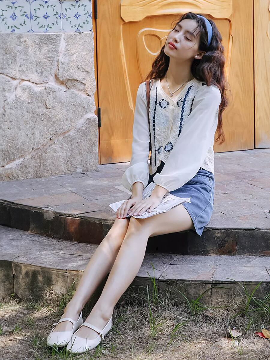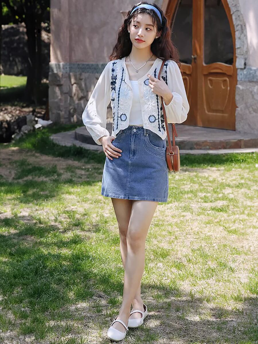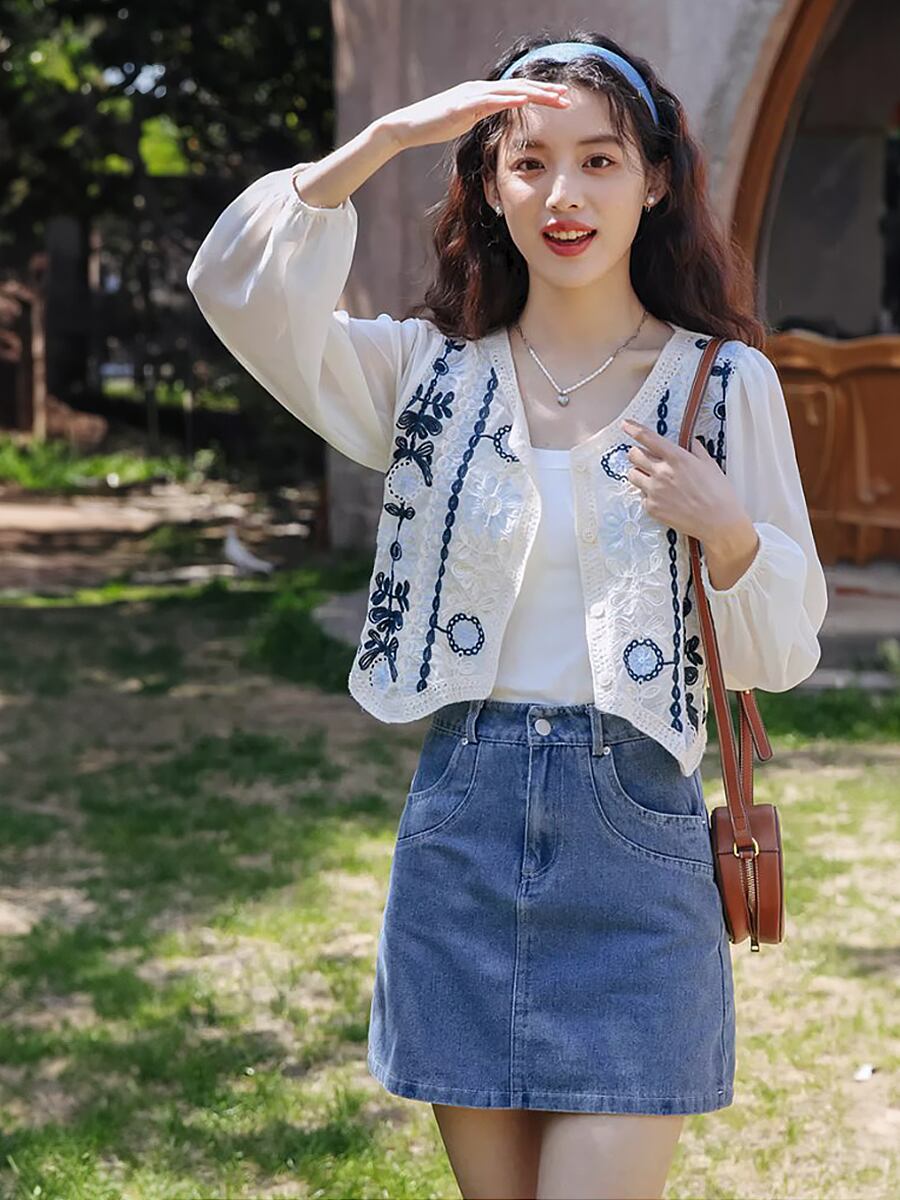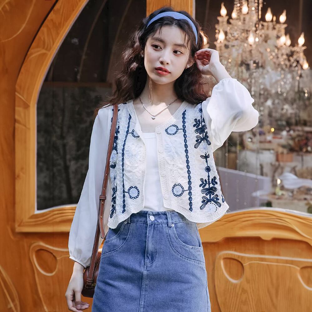 ラウンドネックドッキングかぎ針編み刺繍ブラウスカーディガン カーディガン 長袖 刺繍 花柄刺繍 かぎ針 クロシェ編み ブラウス カーディガン 薄め 長袖 ホワイト 白 ブルー 青系 ナチュラル感 韓国ファッション 大人可愛い おしゃれ 大人女子 ラブリー キュート ガーリー 透け感 主役級 存在感 花柄 春 夏 秋 レディース ママ 学生 OL デート 女子会 通勤 通学 休日 イベント リゾート 旅行 ホテル コーデ モテ インスタ映え 韓国コーデ