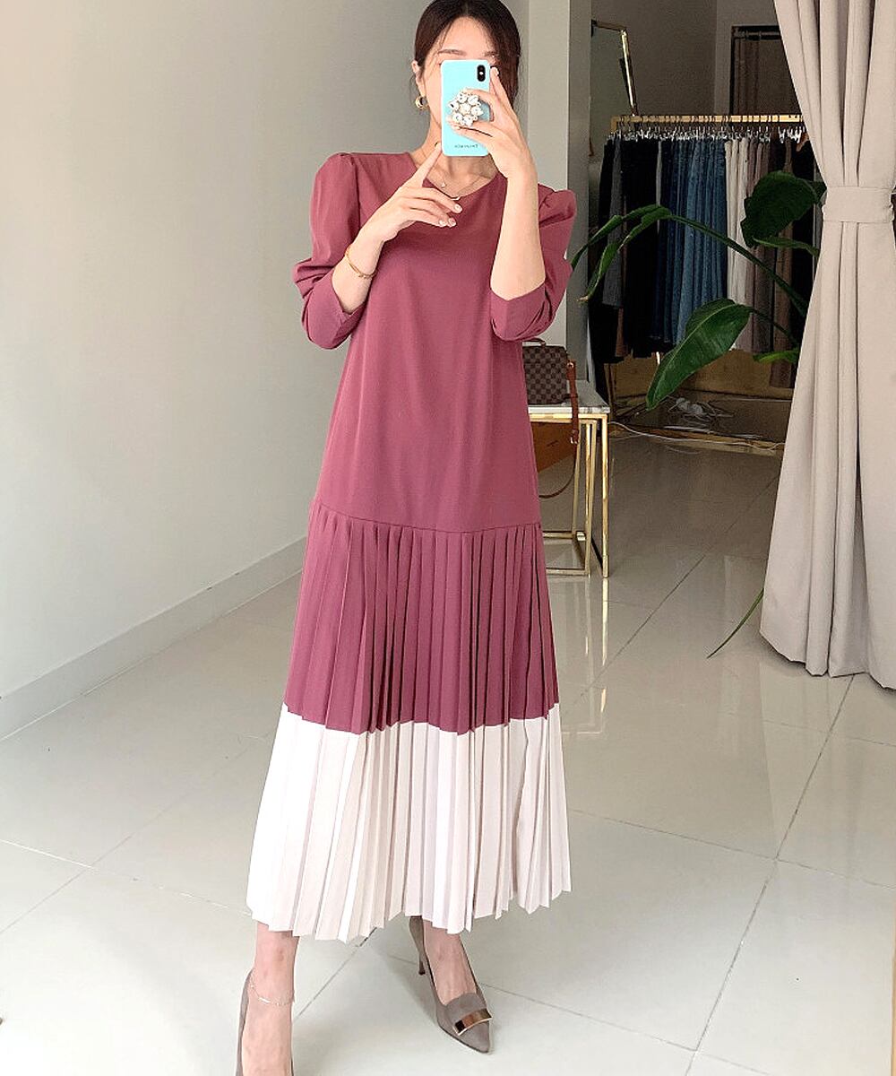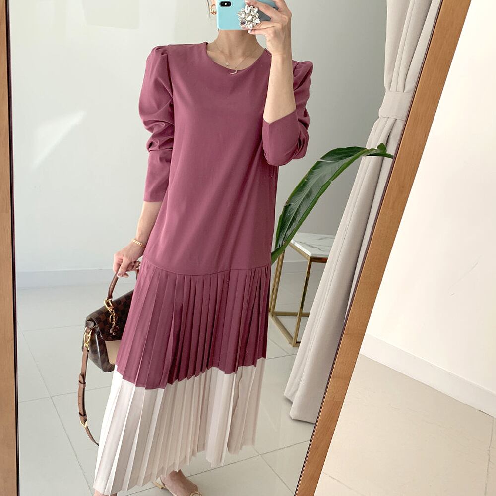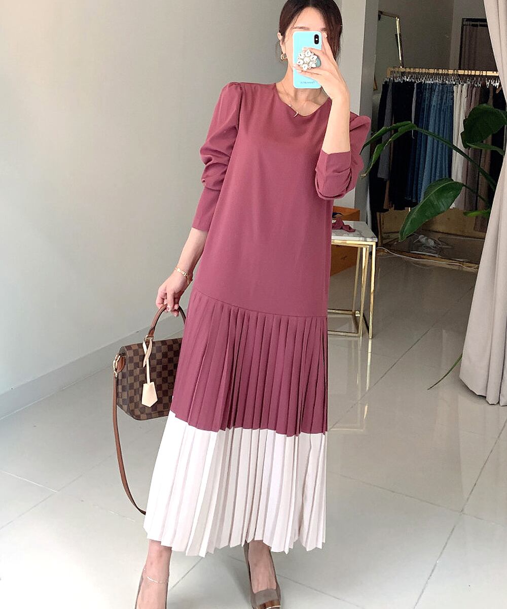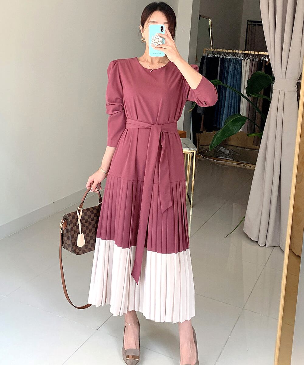 全2色 ワンピース ラウンドネック プリーツワンピース マキシ丈 袖あり 長袖 襟なし プリーツ ウエストリボン ハイウエスト かわいい 大人可愛い きれいめ シンプル 大人 上品 おしゃれ 大人女子 こなれ感 キュート エレガント 主役級 存在感 無地 秋 10代 20代 30代 レディース オフィス ビジネス OL 通勤 学生 通学 デート お出かけ 女子会 休日 旅行 ホテル レストラン 着回し 普段使い 韓国 オルチャン 楽ちん 体型カバー 脚長 S M ブラック ピンク 大人カラー バイカラー
