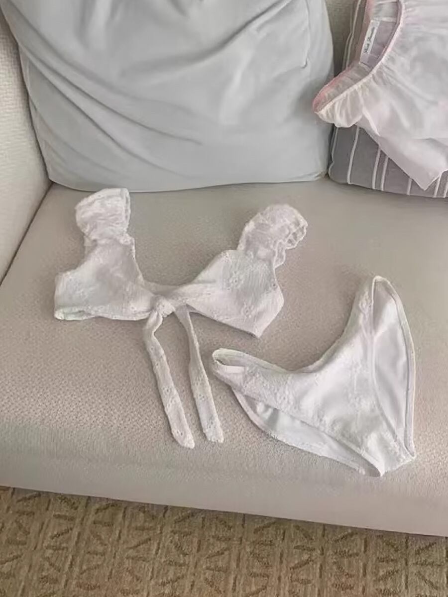 水着 ビキニ パンチングレース三角ビキニ ホワイト 白 レース生地 レース 三角ビキニ トライアングルビキニ ヒップアップ ヒップアップ見え スイムウェア ツーピース パッド付き ワイヤーなし ノンワイヤー マイクロビキニ セクシービキニ セクシー 大人可愛い 可愛い きれいめ セクシー 透け感 大人 大人っぽい おしゃれ 個性的 モード系 モダン レディース 夏 海 ビーチ プール リゾート 美脚 高見え 格上げ 韓国コーデ 韓国ファッション