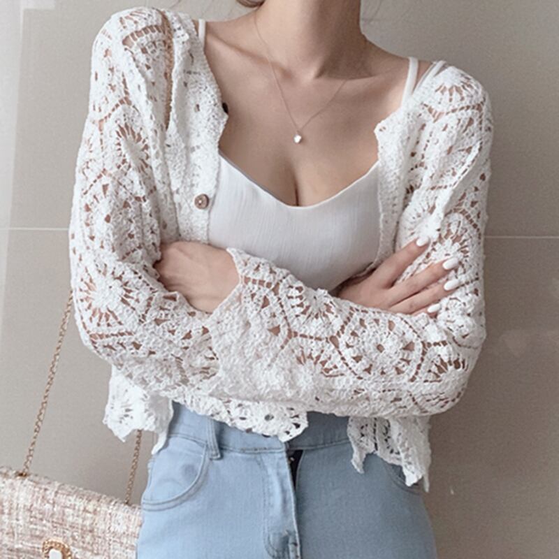 全2色 かぎ編み クロシェ編み カーディガントップス カーディガン ボレロ 薄手 ざっくり ざっくりニット かわいい おとなかわいい 大人可愛い 大人女子 シンプル カジュアル クール かっこいい おしゃれ お洒落 ラフ レディース 女性用 学生 通学 デート 休日 普段使い デイリー ファッション サイズ フリーサイズ 体型カバー ゆったり ゆる ぬけ感 色展開 ホワイト ベージュ 韓国コーデ 白