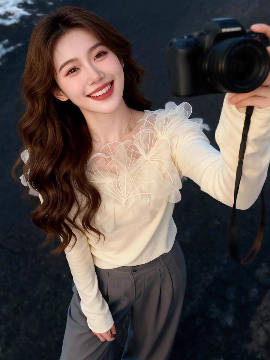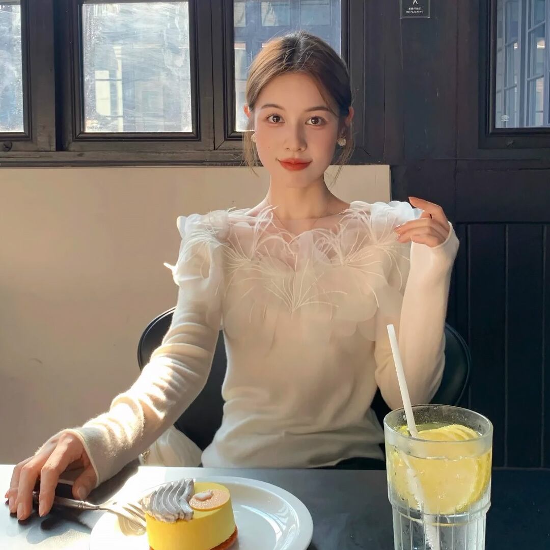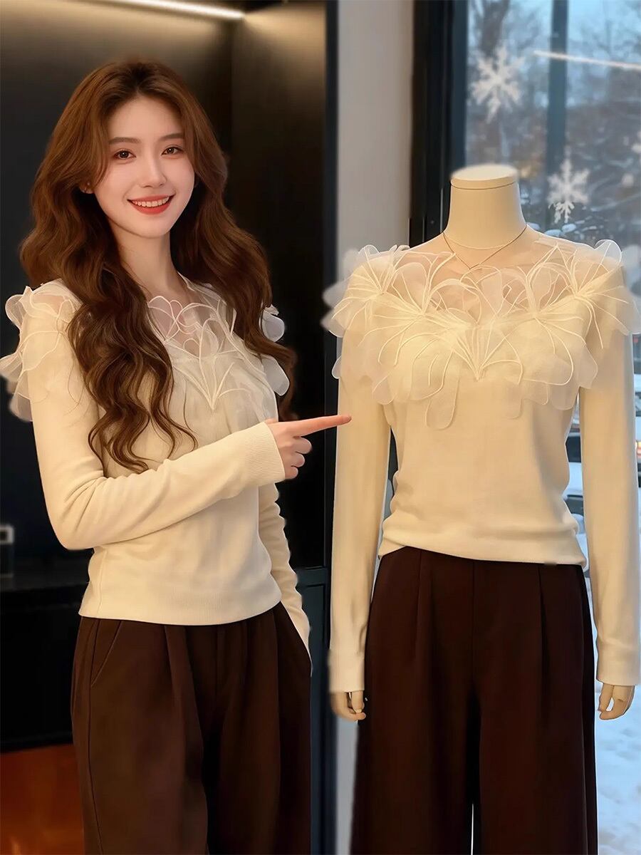 襟ぐり花飾り長袖ニット セーター 長袖 ラウンドネック クルーネック 花刺繍オーガンジー チュール シフォン ニット 花飾り あったか フローラル トップス エンブロイダリー かわいい 大人可愛い きれいめ 清楚 カジュアル 大人 上品 おしゃれ お洒落 かっこいい レトロ 大人可愛い 大人女子 こなれ感 ラフ ラブリー キュート ガーリー 個性的 レディース ビジネス OL 通勤 学生 通学 デート お出かけ 韓国コーデ 韓国ファッション オフホワイト 白 アイボリー