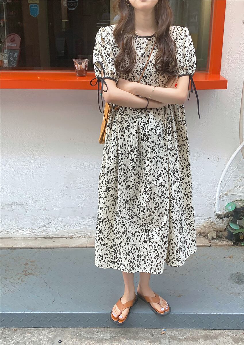 ワンピース バブルスリーブ ルーズウエスト 楽ちん モノトーン 膝下 大きなサイズ ラージサイズ ミモレ サマーワンピ 袖あり 半袖 パフスリーブ ラウンドネック クルーネック フレア ストレート ワイド Aライン レース チュール リボン 薄手 かわいい 大人可愛い カジュアル おしゃれ お洒落 ラフ キュート 柄 花柄 小花柄 フラワー 春 夏 秋 誕生日 10代 20代 30代 レディース マタニティ 学生 通学 デート お出かけ 女子会 お泊まり 休日 旅行 海 プール 普段使い 韓国コーデ