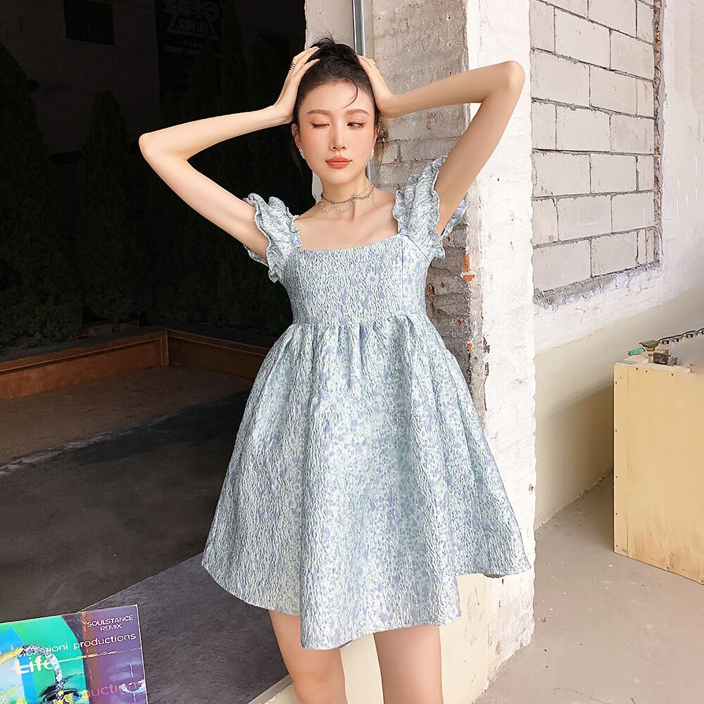 ライトブルー ミニワンピースドレス 水色 ワンピース ミニワンピ ドレス スクエアカット ハイウエスト 脚長効果 ワンピ 半袖 スクエアネック ウエスト切替え Aライン ベルライン 膝上 ふんわり袖 バルーン袖 光沢 パーティ 発表会 結婚式 二次会 イベント 大人女子 大人可愛い こなれ感 オシャレ お洒落 シンプル かわいい ガーリー ラブリー キュート カジュアル モテ 主役級 抜け感 韓国コーデ 韓国ファッション 青 水色