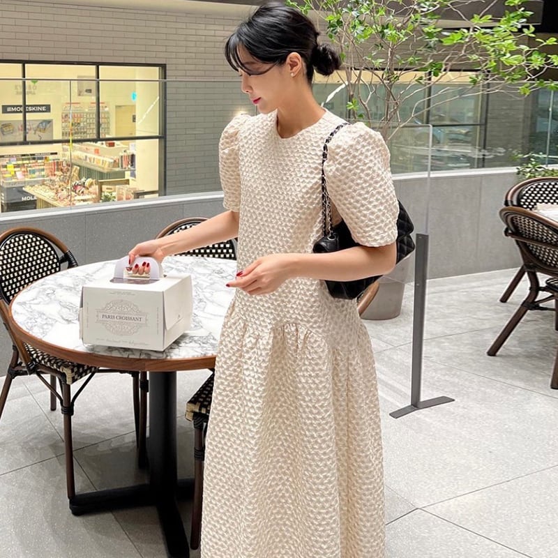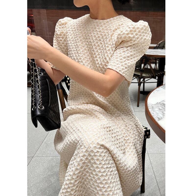 ワッフルワンピース ロングワンピース フレアスカート フレアワンピース ロング マキシ丈 袖あり 半袖 ラウンドネック 厚手 パフスリーブ フレア かわいい 大人可愛い カジュアル 大人 おしゃれ 大人可愛い 大人女子 こなれ感 キュート ガーリー チェック柄 春 夏 10代 20代 30代 40代 レディース 通勤 通学 デート お出かけ 女子会 イベント リゾート 旅行 普段使い 休日 S M L XL ワンカラー 韓国コーデ 韓国ファッション