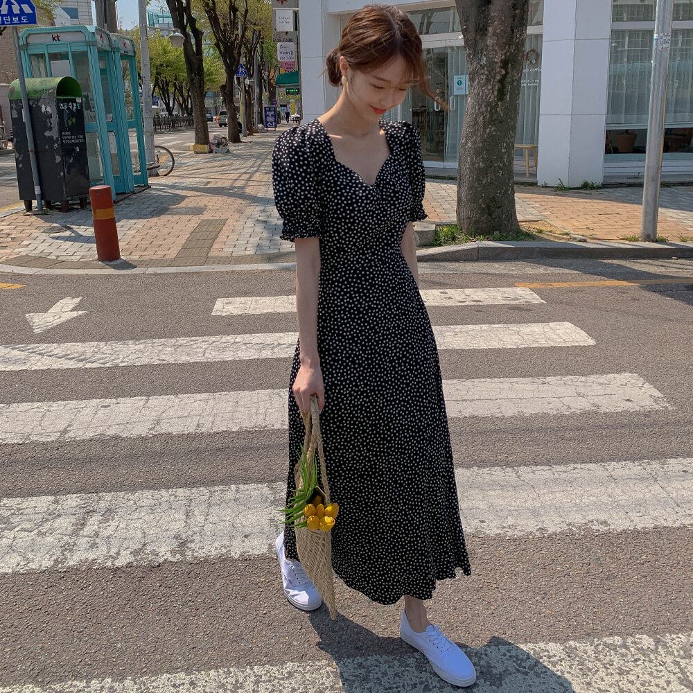 レレトロ 小花ドットワンピース フレアワンピース ワンピドレス ロング ロング丈 袖あり 半袖 パフスリーブ 襟なしフラワードット フレア かわいい 大人可愛い きれいめ シンプル 大人 上品 大人女子 こなれ感 個性的 モード系 セクシー エレガント モダン 主役級 存在感 フォーマル 春 夏 誕生日 謝恩会 二次会 10代 20代 30代 40代 50代 レディース 女性用 通勤 デート お出かけ 女子会 旅行 ファッション 脚長 モテ S M L ブラック