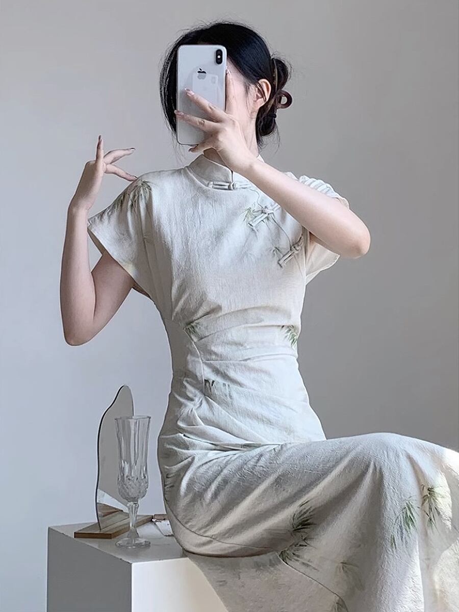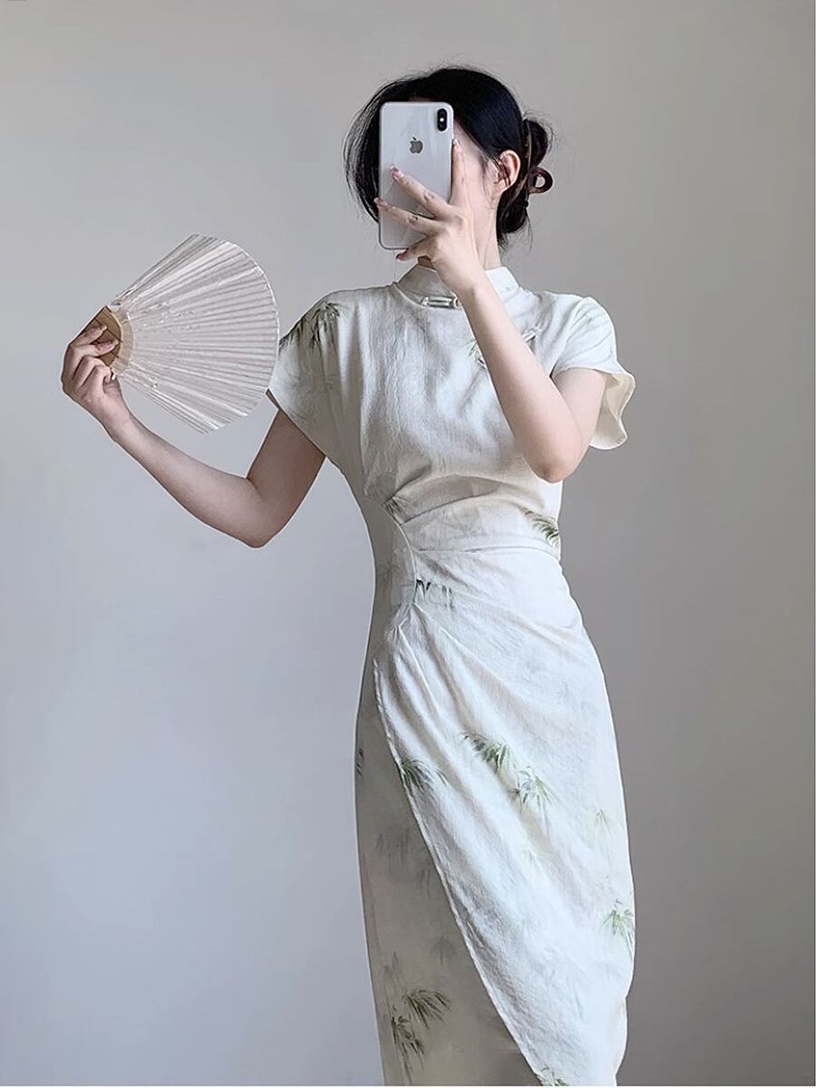 竹柄の落ち着き感のあるチャイナドレスです。