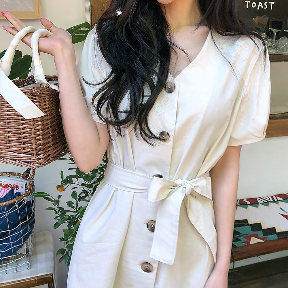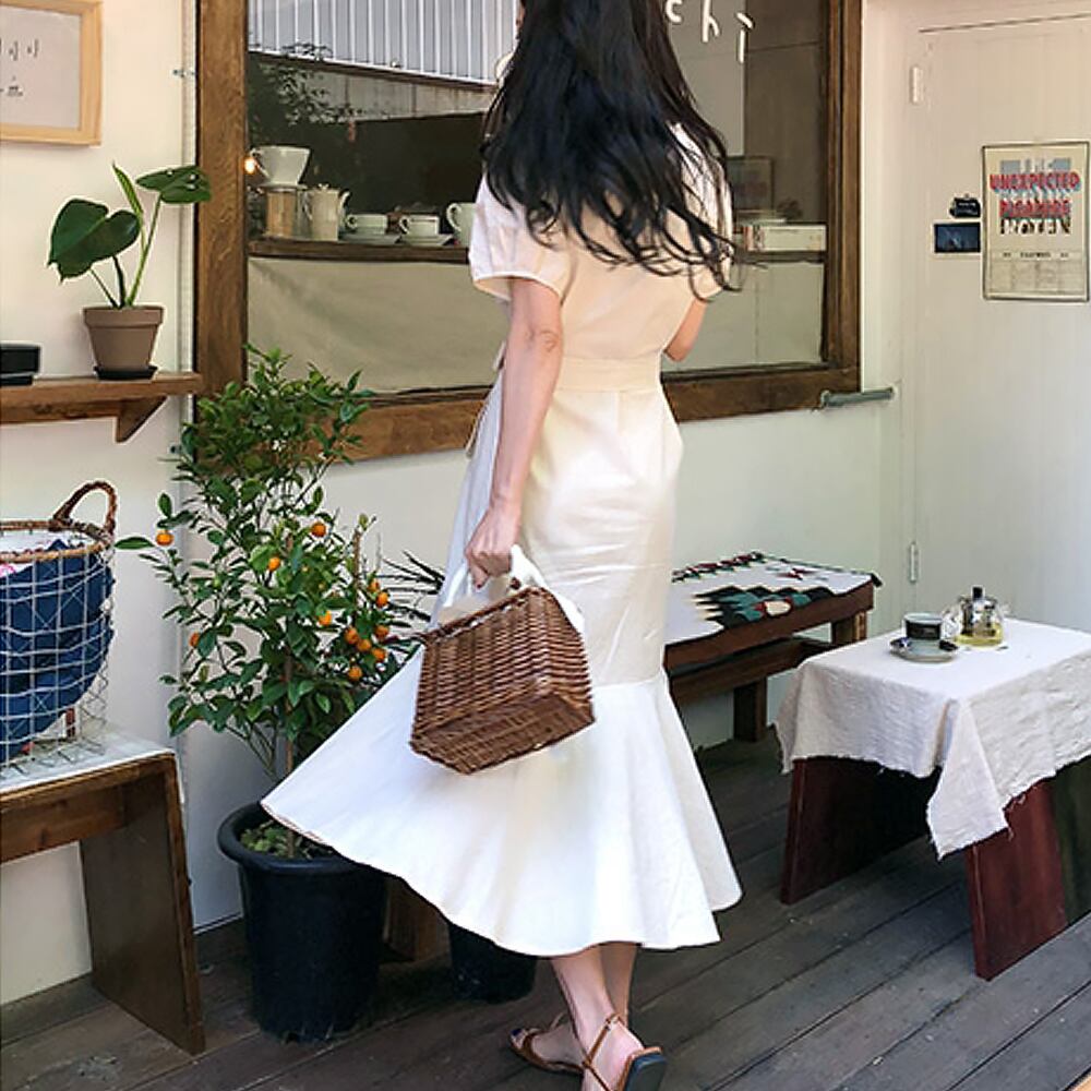 リネン 半袖フロントボタンワンピース パフスリーブ Vネック フィッシュテール マーメイド フレンチ風ワンピース ペプラム 大人可愛い きれいめ シンプル カジュアル 大人 上品 おしゃれ お洒落 大人可愛い 大人女子 こなれ感 ウエストリボン ウエストマーク 共布リボン 個性的 レディース OL 通勤 学生 通学 デート お出かけ 女子会 お泊まり 休日 裾切り替え パーティー イベント リゾート 旅行 韓国コーデ 韓国ファッション 生成り