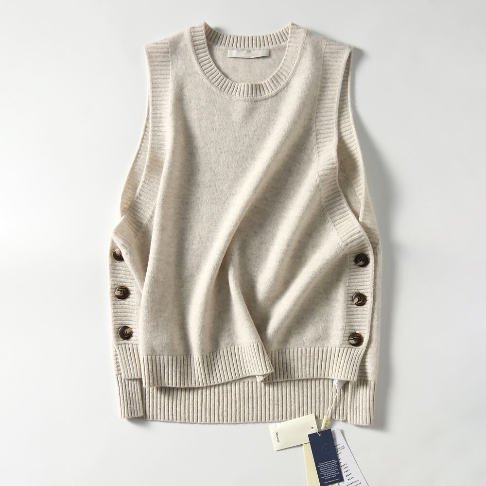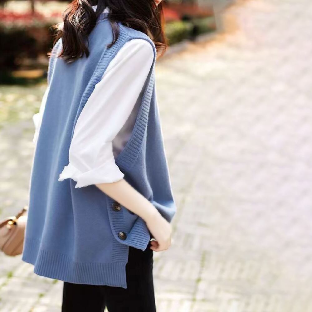 全3色 ニットベスト ニットジレ セーター ベスト プルオーバー ラウンドネック ノースリーブ ニット 袖なし 襟なし ストレート 脇ボタン かわいい 大人可愛い きれいめ シンプル カジュアル 大人 上品 おしゃれ お洒落 無地 春 秋 冬 10代 20代 30代 40代 50代 レディース 女性用 ママ OL デート お出かけ 旅行 ショッピング 着回し 普段使い 重ね着 ファッション 楽ちん 体系カバー ホワイト ブラック 青 韓国ファッション 韓国コーデ