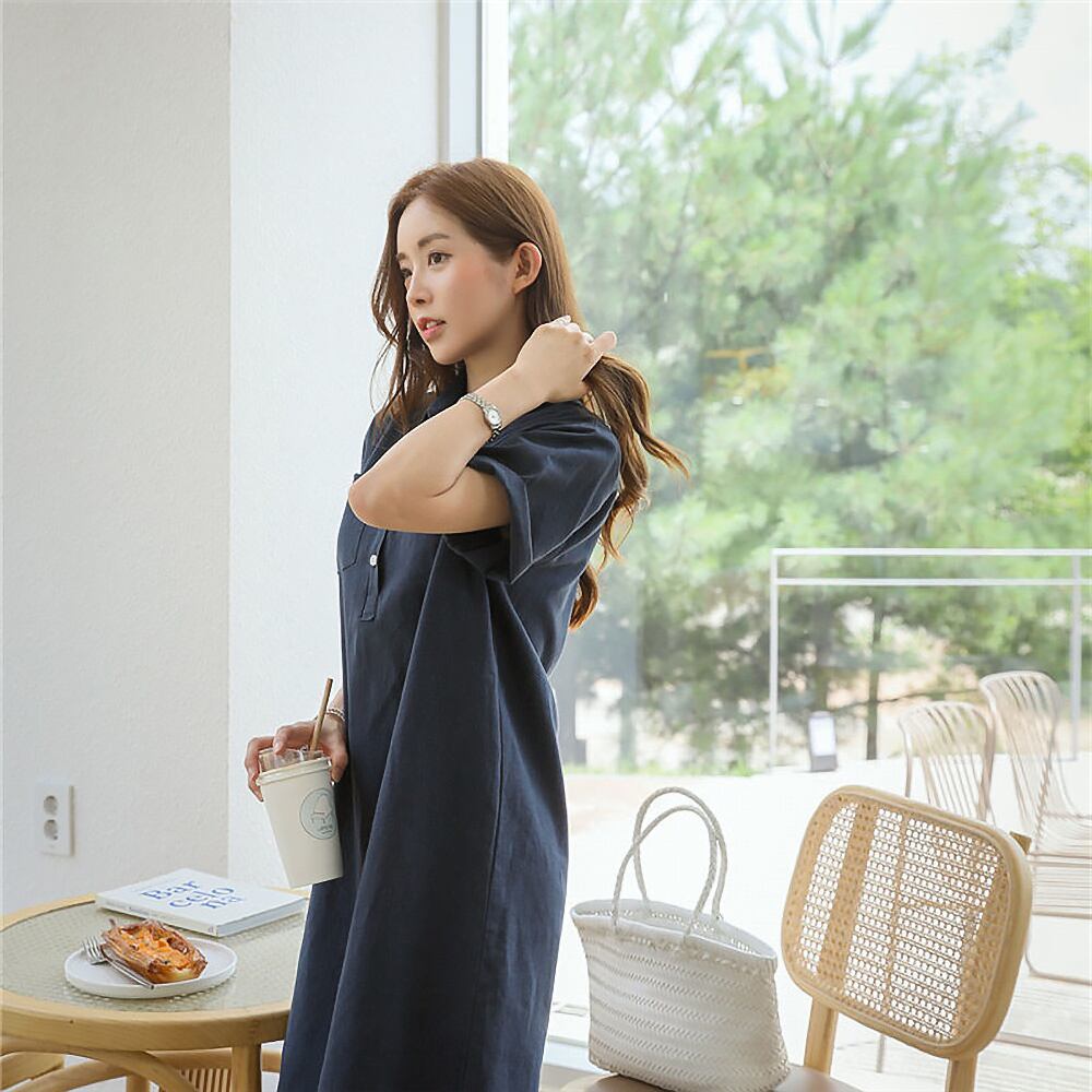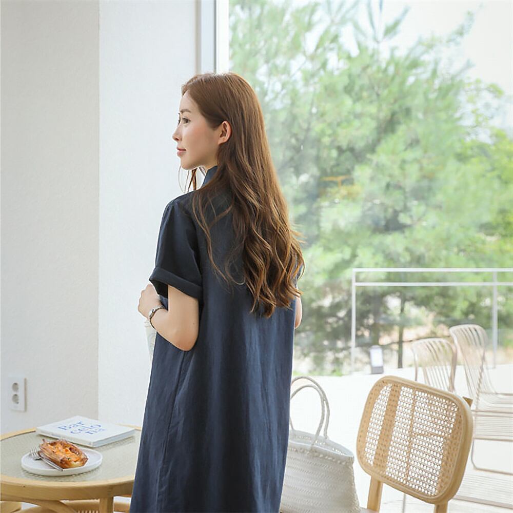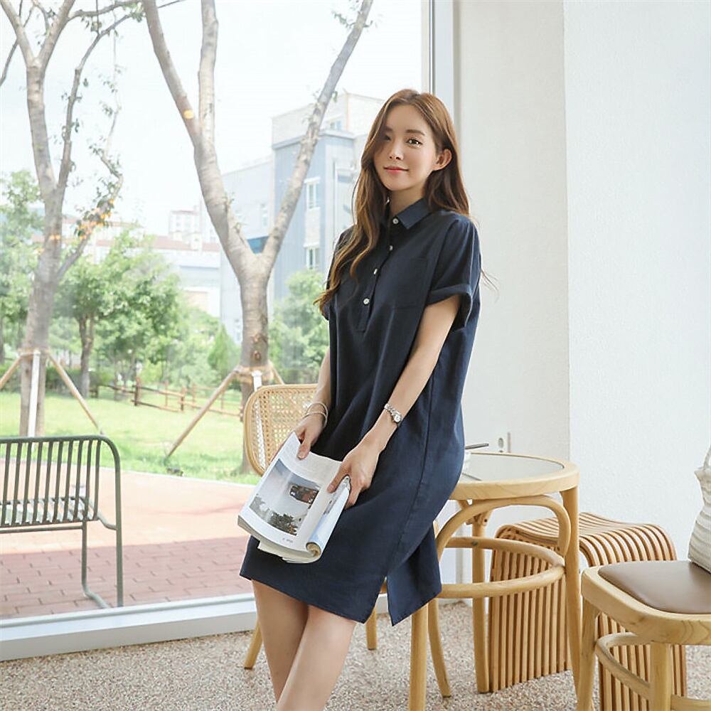 全3色 ツーポケット 半袖シャツワンピース ワンピース シャツワンピース 膝丈 横スリット大きいサイズ 袖あり 半袖 襟付き 混麻 ストレート 前開き ボタン 無地 かわいい 大人可愛い きれいめ シンプル 大人 上品 おしゃれ お洒落 大人女子 こなれ感 カジュアル 春 秋 夏 レディース 休日 お出かけ スタイル モテ 体系カバー ベージュ ネイビー ブルー 青 オルチャン 韓国コーデ 韓国ファッション