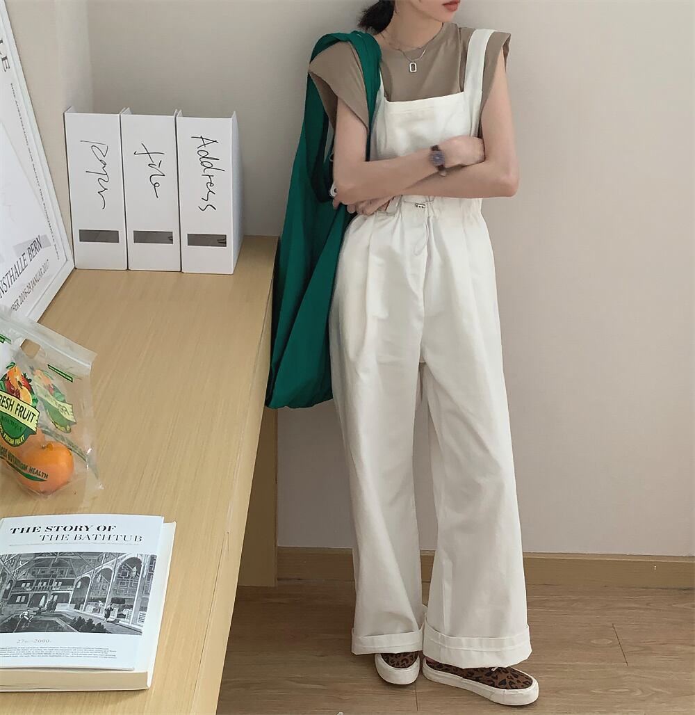 サロペットパンツ オーバーオール ワイドパンツ オールインワン つなぎ ドロストパンツ ゆったり ゆる 体型カバー ボーイッシュ 生地薄め ウエストゴム カジュアル 大人 上品 おしゃれ お洒落 ゆったり ゆる かっこいい 重ね着 体型カバー ファッション 主役級 存在感 抜け感 無地 春 秋 冬 10代 20代 30代 40代 レディース 女の子 ユニセックス 学生 通学 デート お出かけ 公園デビュー オフホワイト S M L XL オルチャン 韓国コーデ 韓国ファッション 白