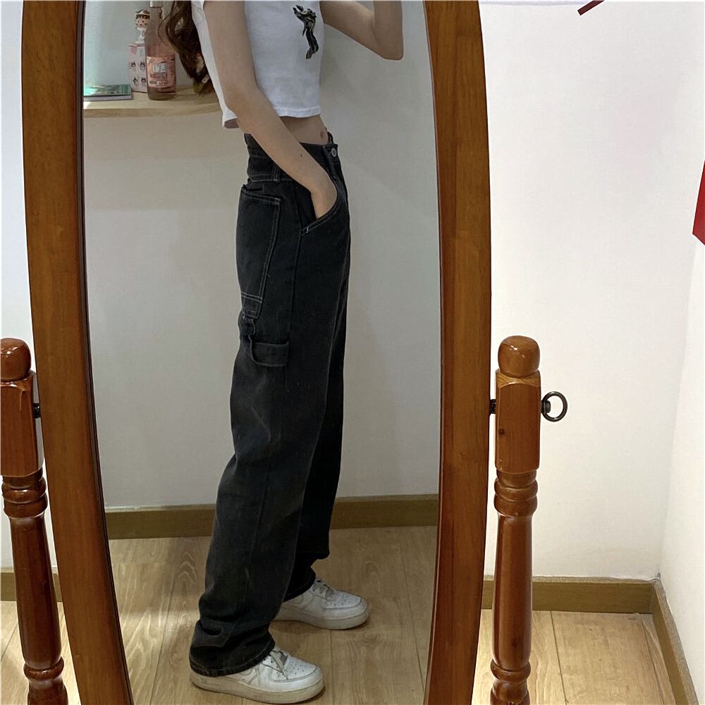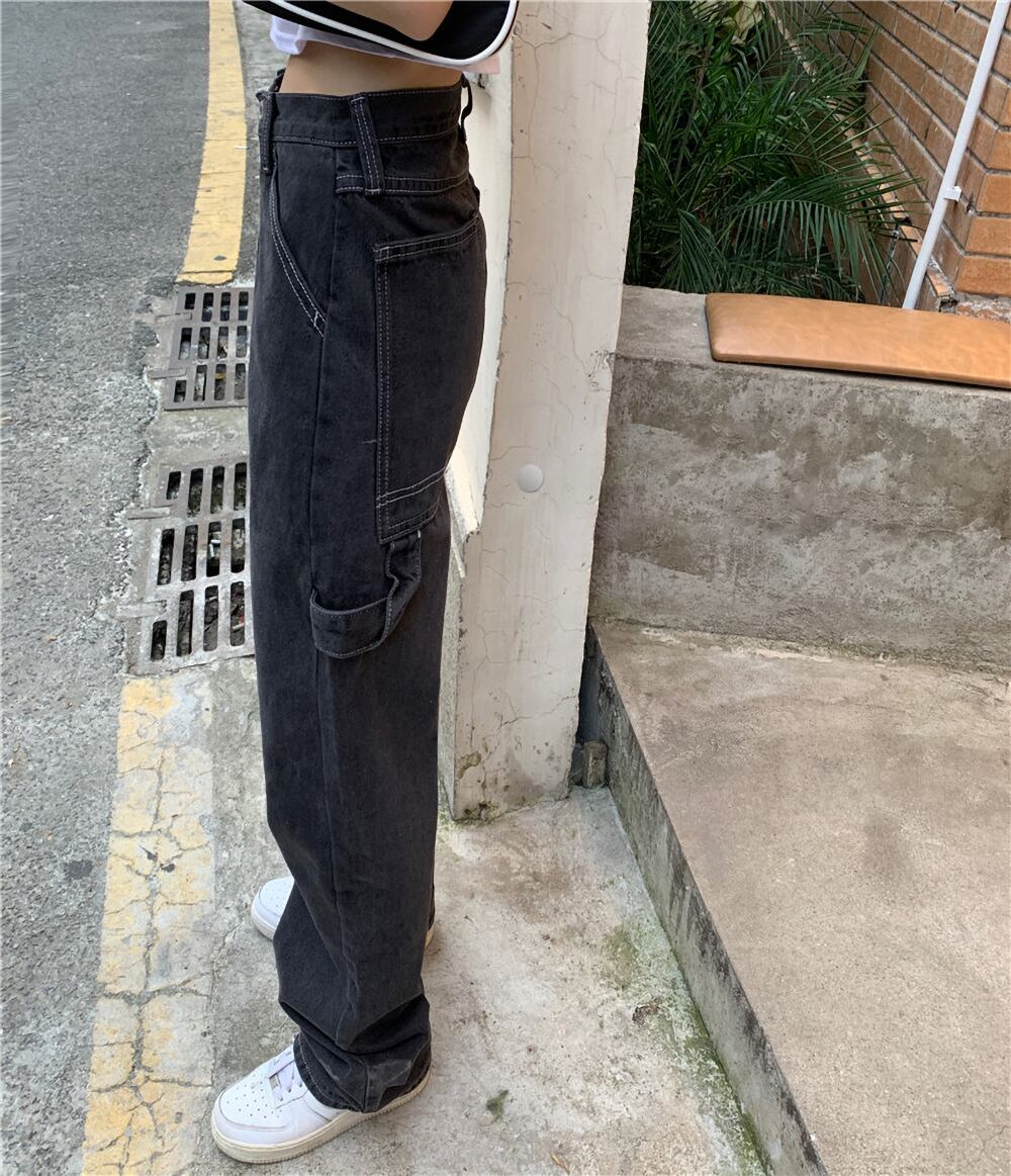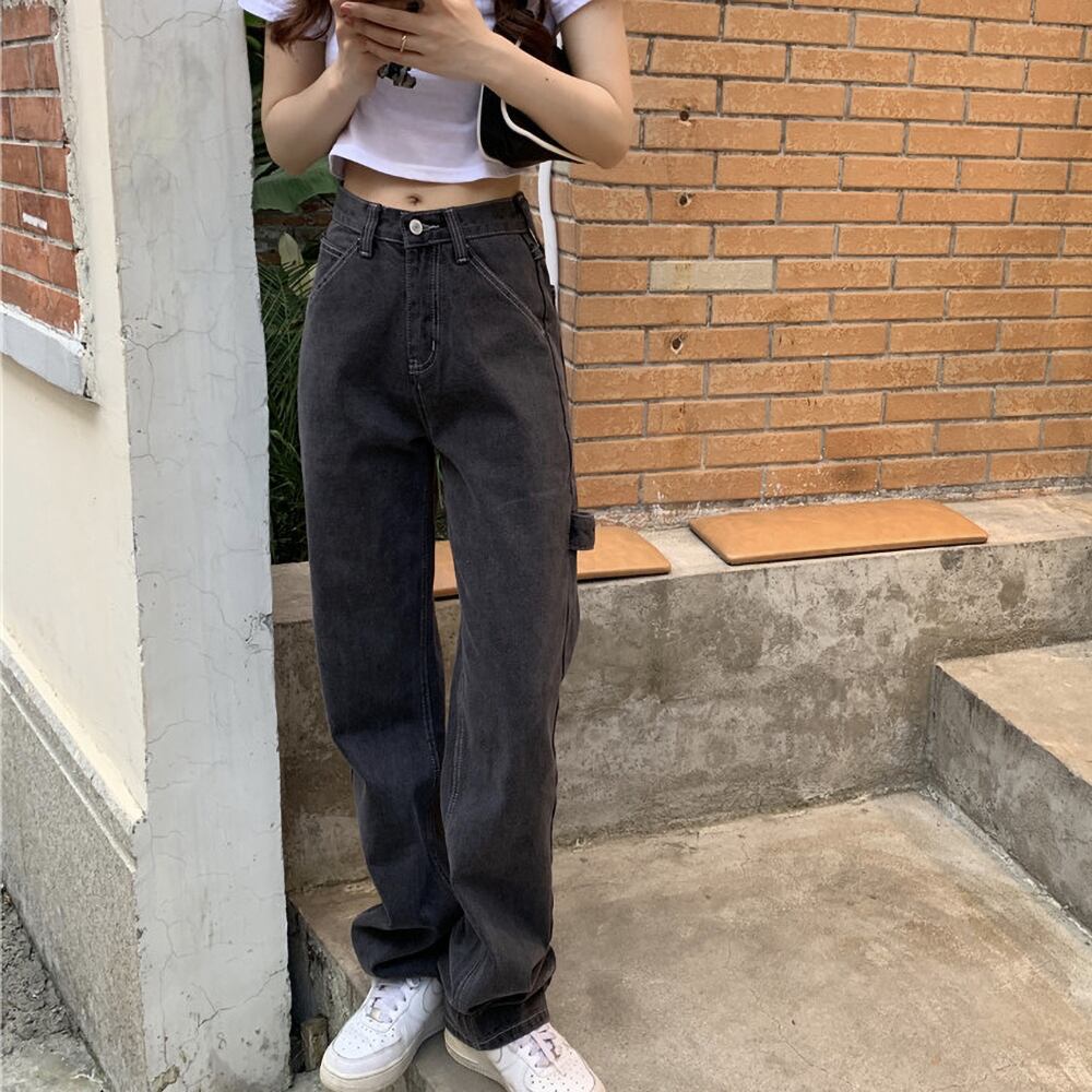 ボトムス デニムパンツ ストレート ポケット ハイウエスト スモークカラー かわいい 大人可愛い シンプル カジュアル 大人 おしゃれ かっこいい 大人女子 こなれ感 ラフ メンズライク キュート クール 主役級 存在感 無地 秋 冬 10代 20代 30代 レディース 学生 通学 デート お出かけ 公園デビュー 女子会 休日 着回し 普段使い 重ね着 韓国 オルチャン ファッション コーデ スタイル 脚長 S M L XL ブラック