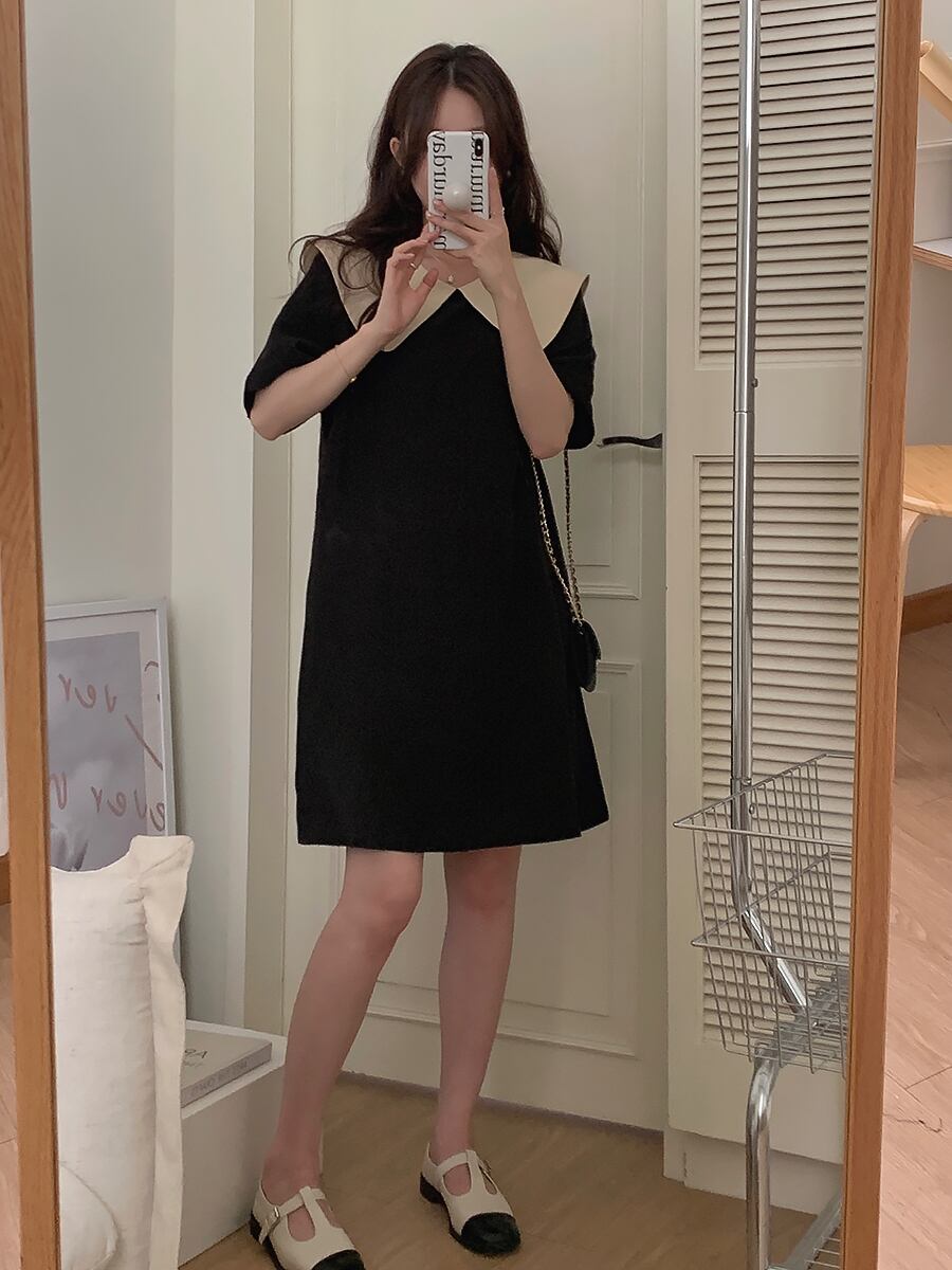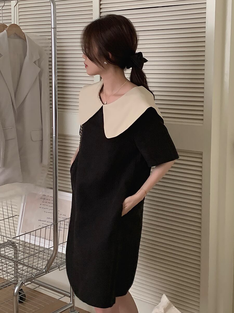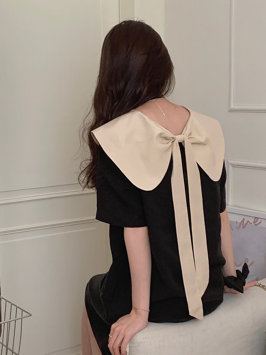 2way ビッグカラーワンピース ワンピース フェミニンコーデ バイカラー ストレートライン Iライン 背中リボン バックリボン 体型カバー お腹楽ちん 着痩せ 着痩せ サックワンピース かわいい 大人可愛い きれいめ カジュアル 大人 おしゃれ 大人可愛い お嬢様 ラフ ラブリー キュート 個性的 レディース ビジネス OL 通勤 学生 通学 デート お出かけ パーティー イベント リゾート 旅行 韓国ファッション 韓国コーデ オルチャン