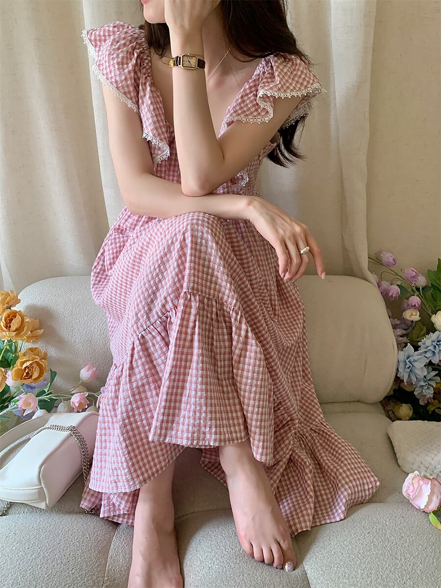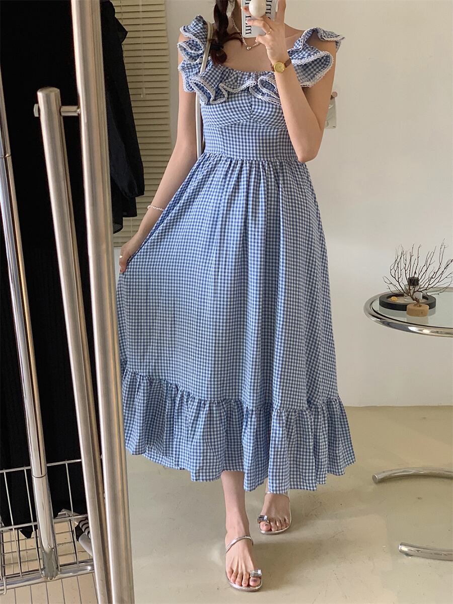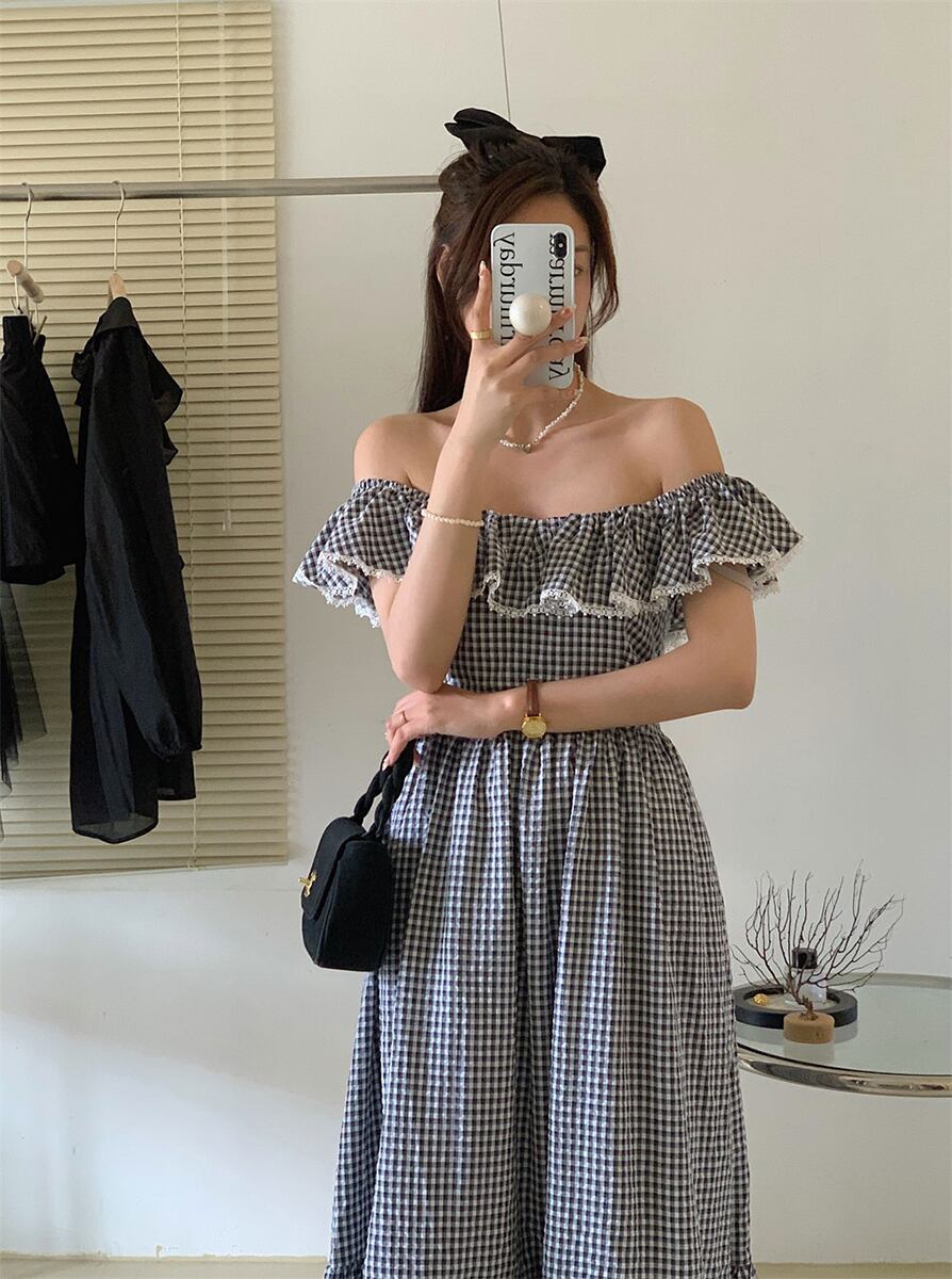 全3色 ギンガムチェック ラッフルカラーワンピース ワンピース フェミニン 夏ワンピ 夏ワンピース ウエスト切り替え 裾フリル オフショル オフショルダー レース 襟レース U字襟 着痩せ 着痩せ かわいい 大人可愛い きれいめ カジュアル 大人 おしゃれ 大人可愛い お嬢様 ラフ ラブリー キュート 個性的 レディース ビジネス OL 通勤 学生 通学 デート お出かけ パーティー イベント リゾート 旅行 韓国ファッション 韓国コーデ オルチャン 青 黒 ピンク
