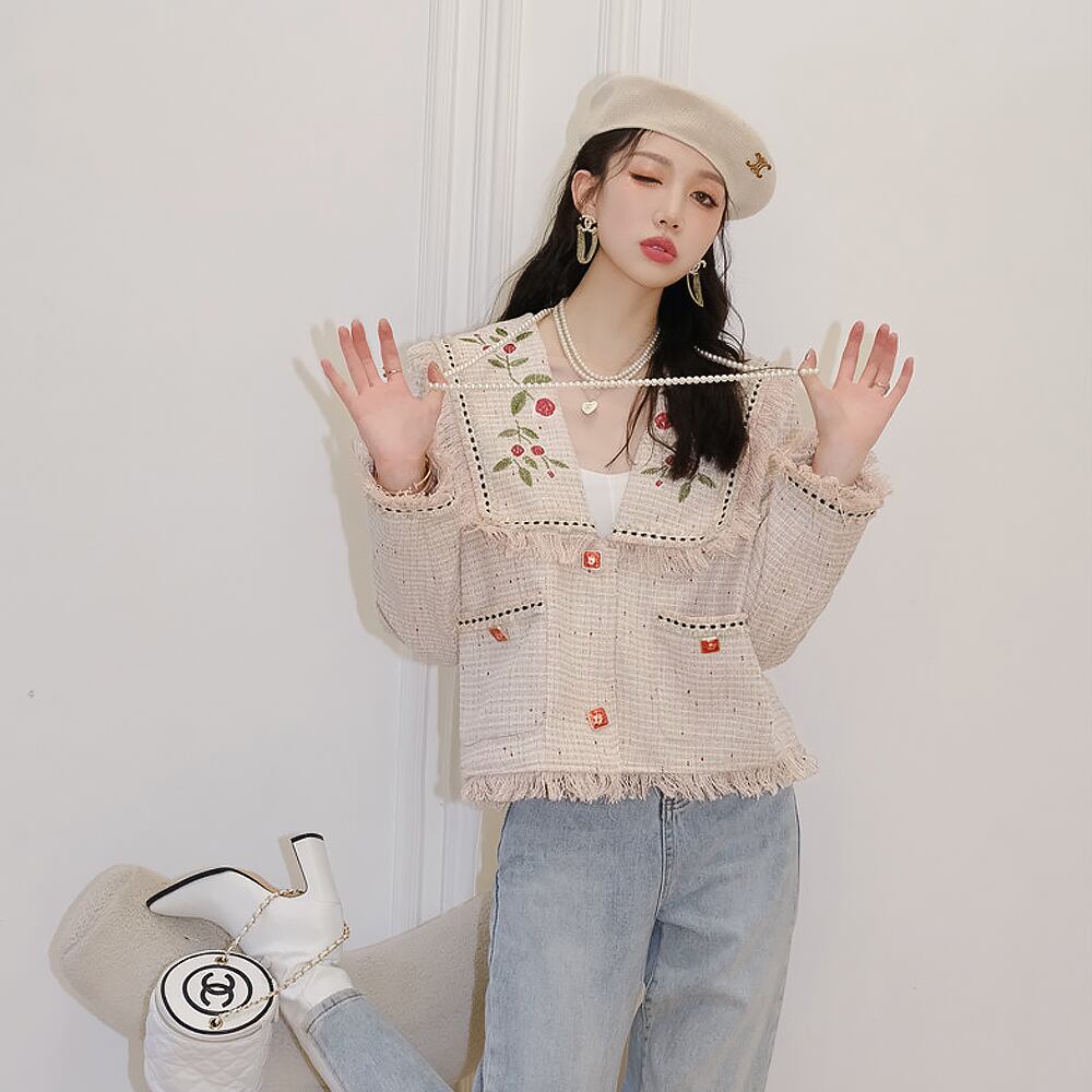 春の大人可愛い刺繍ジャケット。