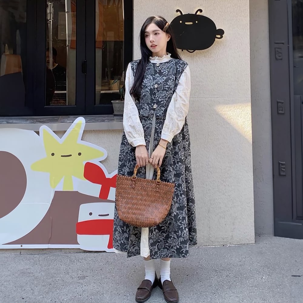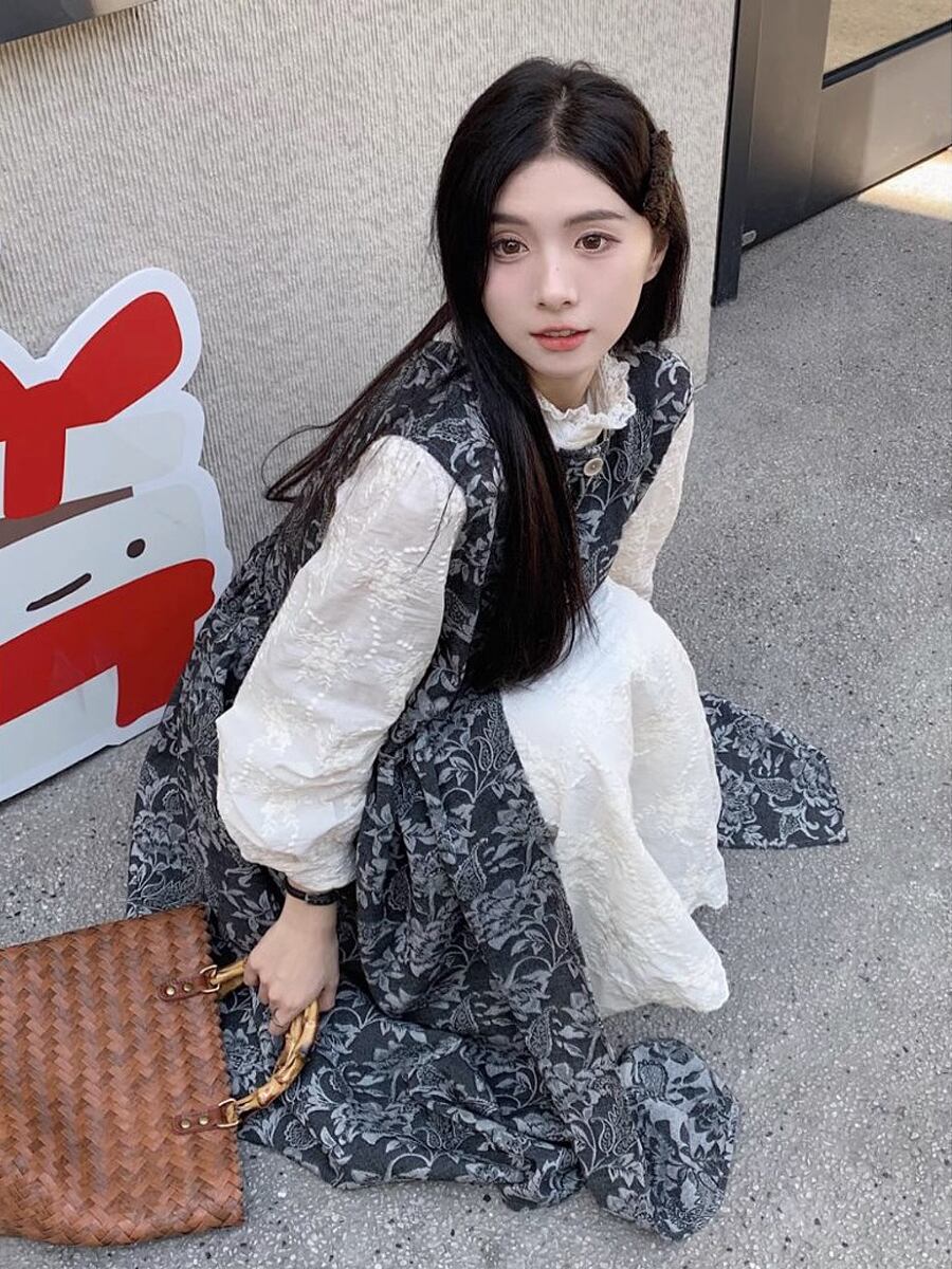 ジャガードジャンパースカート ロングベスト ジャガードワンピース ワンピ 重ね着 レイヤードコーデ レーヤード ロングベスト ロングジレ ジャンパースカート ジャンスカ 花柄 大人女子 大人可愛い オシャレ お洒落 シンプル かわいい ガーリー ラブリー キュート ルーズ カジュアル モダン モテ ゆる 韓国 韓国コーデ 楽ちん 抜け感 通勤 学生 お出かけ 着回し 普段使い ダークブルー