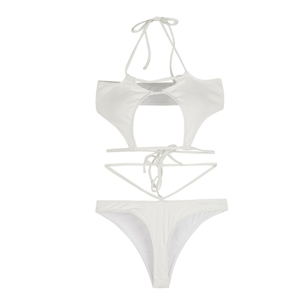 ホワイト ホルターネックビキニ 白 ブラジリアンビキニ スイムウェア 紐ビキニ セクシービキニ セパレート バッククリスクロス パッド付き ワイヤーなし 紐 伸縮性 胸元 谷間 谷間魅せ 盛れる セット 上下セット かわいい 大人可愛い きれいめ セクシー sexy シンプル 華やか 大人っぽい おしゃれ スタイリッシュ モダン エキゾチック アジアン 美脚 脚長 韓国コーデ 韓国ファション