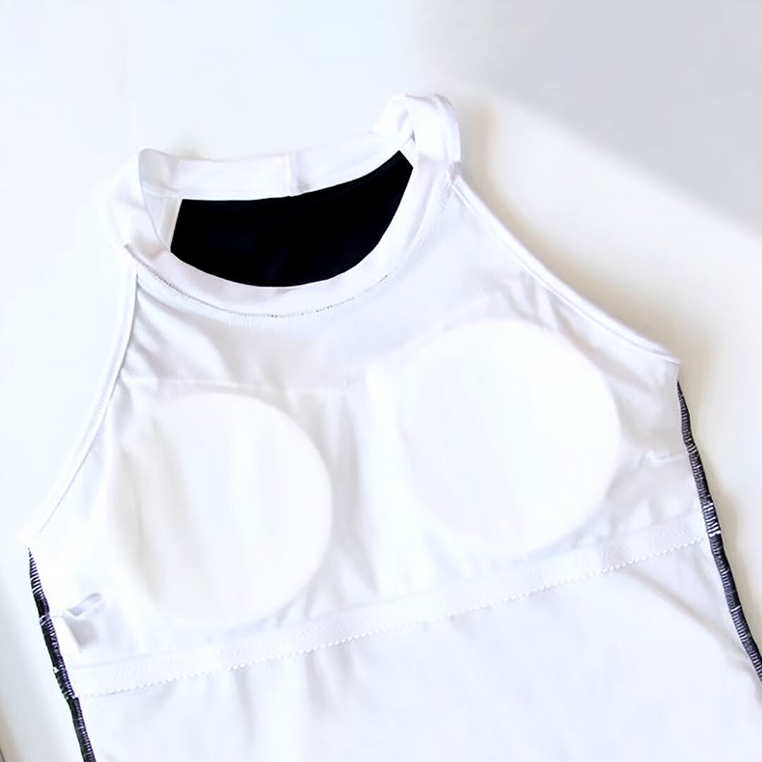 着替えもラクチンのセパレート水着で、ボトムはハイウエストのボーイレッグです。