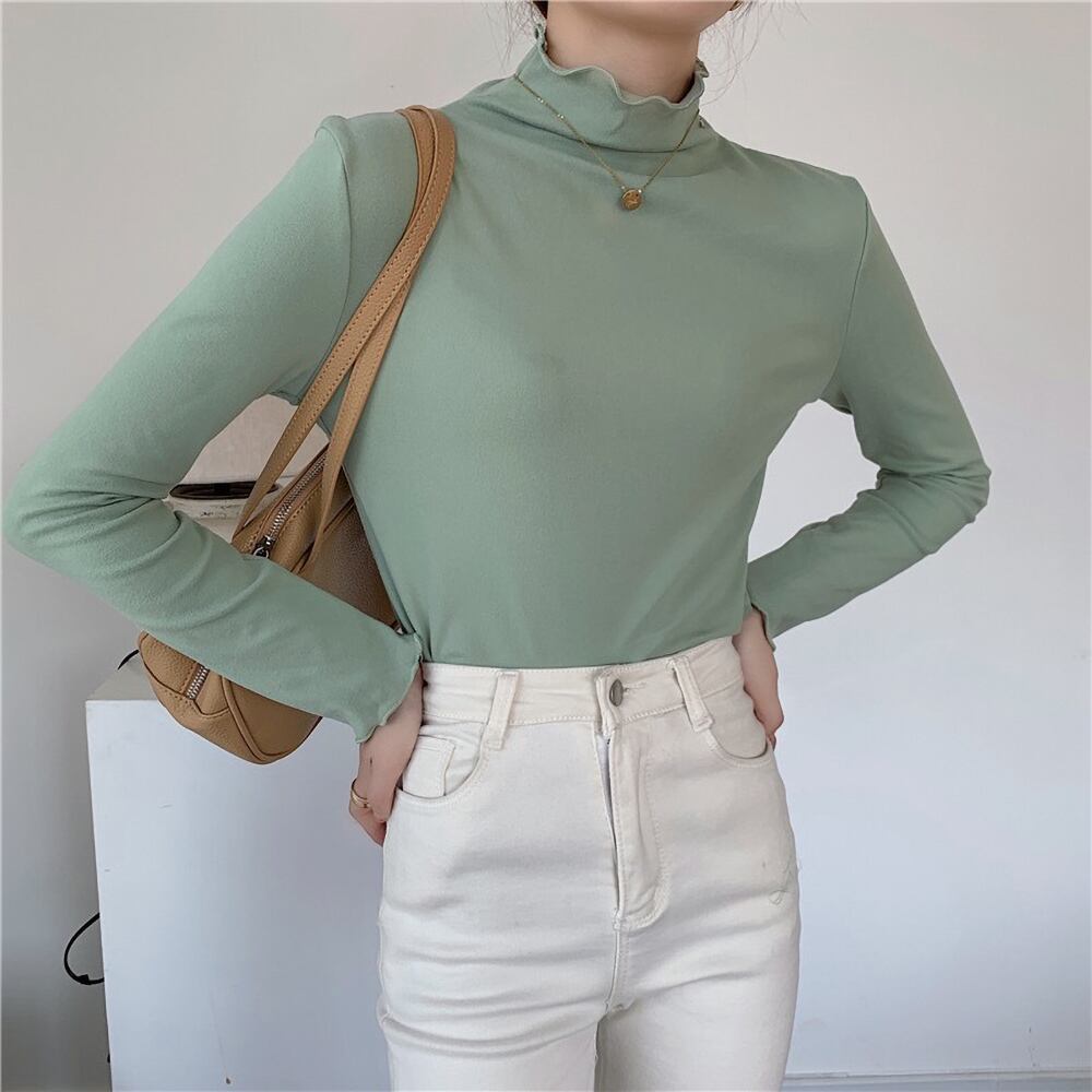全7色 トップス Tシャツ インナー 長袖 タートルネック スリム 細身 フリル かわいい 大人可愛い きれいめ シンプル カジュアル 大人 上品 おしゃれ 大人女子 こなれ感 ラフ キュート 存在感 無地 秋 冬 10代 20代 30代 レディース オフィス ビジネス OL 通勤 学生 通学 デート お出かけ 公園デビュー 女子会 休日 旅行 着回し 普段使い 重ね着 韓国 オルチャン ファッション コーデ 韓国ファッション 韓国コーデ