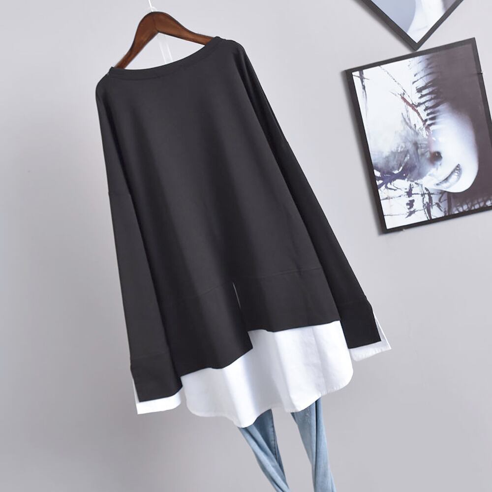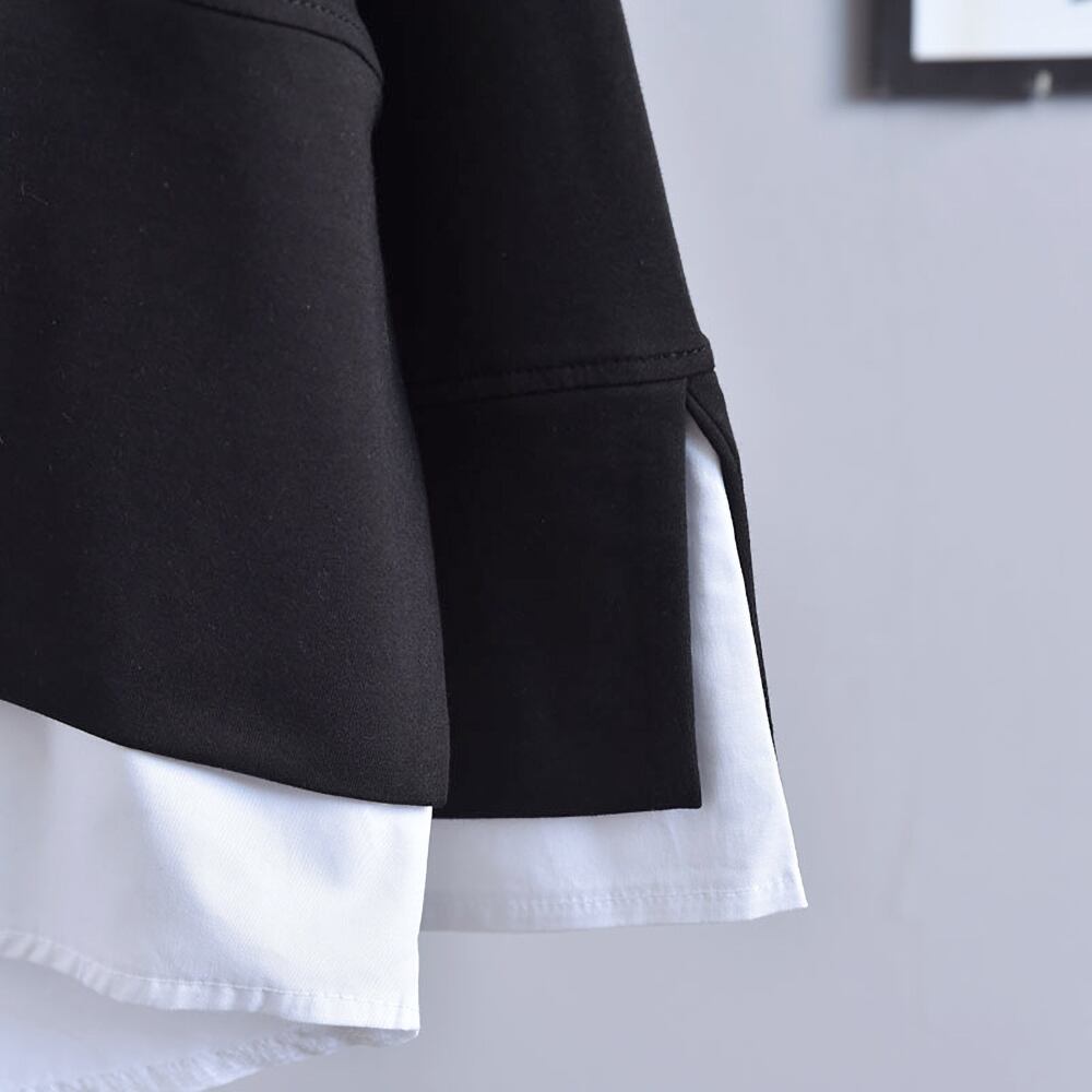 トップス ゆったり ドッキングプルオーバー 長袖 ラウンドネック 襟なし リラックス 大人可愛い シンプル カジュアル 大人 おしゃれ 大人女子 こなれ感 ラフ ドッキング 主役級 存在感 無地 春 秋 10代 20代 30代 レディース オフィス ビジネス OL 通勤 学生 通学 デート お出かけ 公園デビュー 女子会 休日 旅行 着回し 普段使い 韓国 オルチャン ファッション コーデ スタイル フリーサイズ ブラック 大人カラー モノトーン 韓国ファッション 韓国コーデ