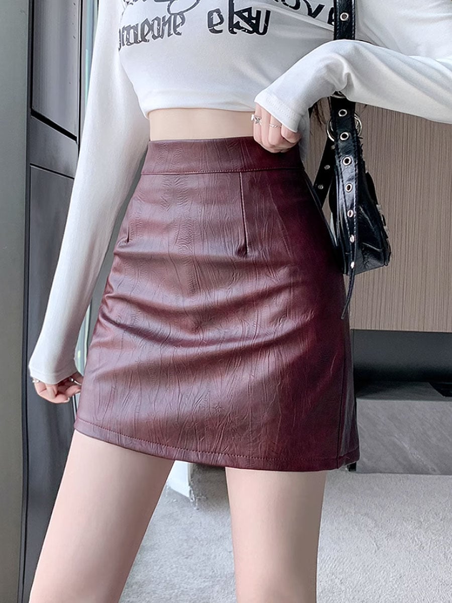 秋冬カラーが大人可愛いPUレザー(フェイクレザー)のミニスカートです。