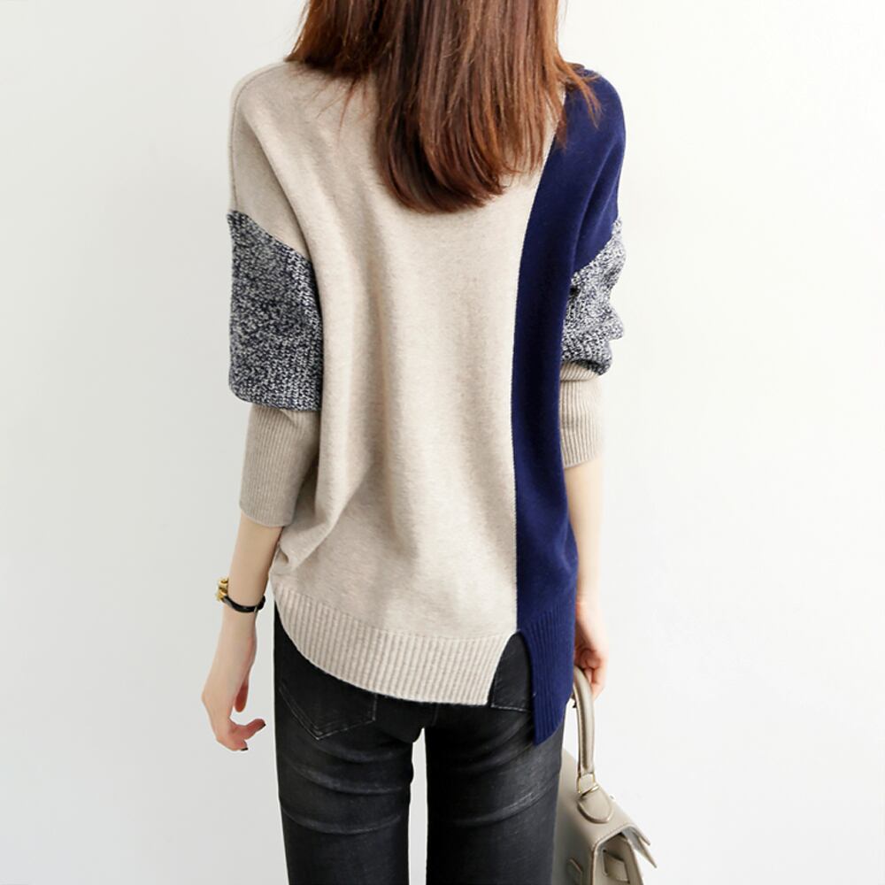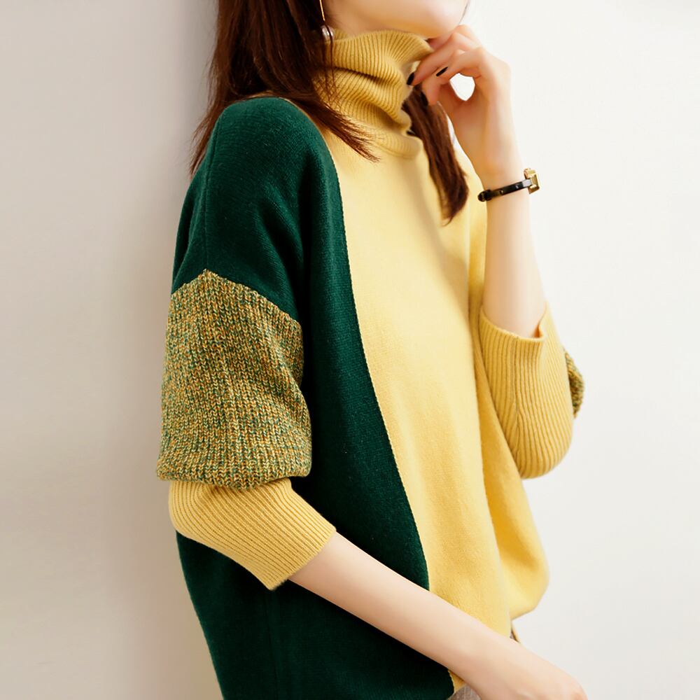 全3色 バイカラーニットトップス バックスリット スリット タートル セーター 長袖 タートルネック ハイネック かわいい きれいめ シンプル カジュアル おしゃれ 大人女子 ラフ キュート 主役級 存在感 無地 秋 冬 10代 20代 30代 レディース オフィス ビジネス OL 通勤 学生 通学 デート 休日 旅行 着回し 普段使い 韓国 オルチャン ファッション コーデ スタイル S M L XL ブラウン イエロー ネイビー 大人カラー 秋カラーク 韓国ファッション 韓国コーデ