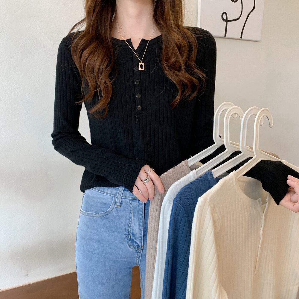 全5色 ヘンリーネックリブニット プルオーバー スマート リブニット Iライン タイト コンパクト フィット ストレッチ 伸縮性 きれいめ シンプル カジュアル 大人 おしゃれ お洒落 大人可愛い 大人女子 こなれ感 ラフ ラブリー キュート ガーリー 個性的 レディース ビジネス OL 通勤 学生 通学 デート お出かけ 公園デビュー 女子会 お泊まり 休日 旅行 海 韓国コーデ 韓国ファッション
