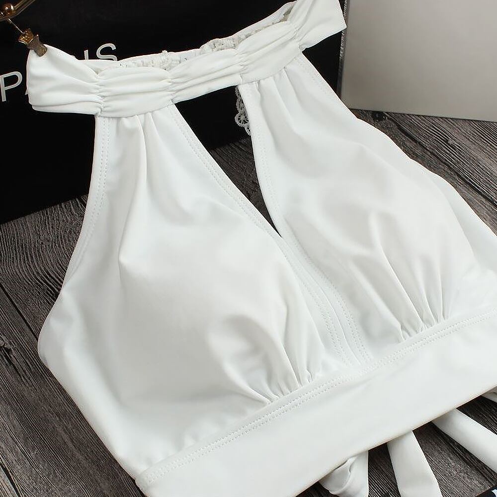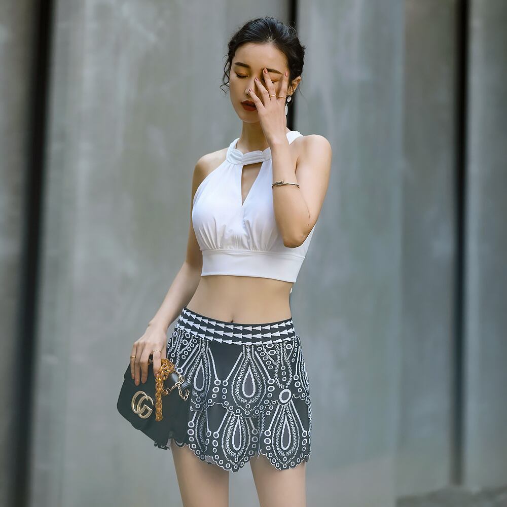3点セット 上下ビキニ+スカート ホルターキーネック 上品 白 黒 ビキニ 水着 ハイウエスト ホルターネック セクシービキニ セパレート パッド付き ワイヤーなし 背中レース バックレース 縁レース 背中リボン 後ろリボン オープンバック 体型カバー 脚長効果 セット 上下セット かわいい 大人可愛い きれいめ セクシー sexy シンプル 華やか 大人っぽい おしゃれ スタイリッシュ モダン エキゾチック 無地 美脚 脚長 韓国コーデ 韓国ファション