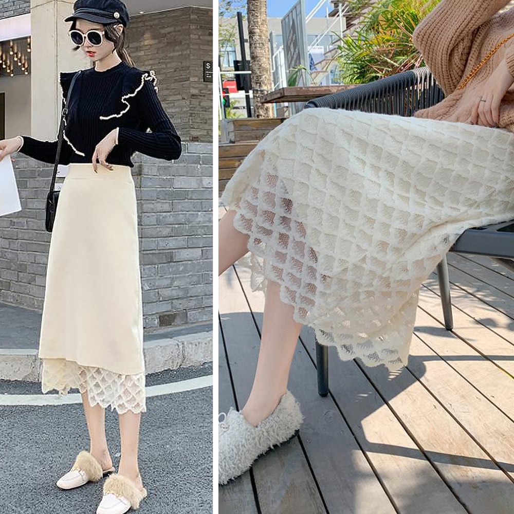 全2色 リバーシブルロングスカート レース編みスカート ロング ミモレ セミフレアスカート 楽ちん ウエストゴム かわいい 大人可愛い きれいめ シンプル カジュアル 大人 上品 おしゃれ お洒落 レトロ大人可愛い 大人女子 こなれ感 ラフ ラブリー キュート ガーリー 個性的 レディース ビジネス OL 通勤 学生 通学 デート お出かけ 公園デビュー 女子会 お泊まり リゾート 旅行 韓国コーデ 韓国ファッション オフホワイト ブラック 黒 アイボリー