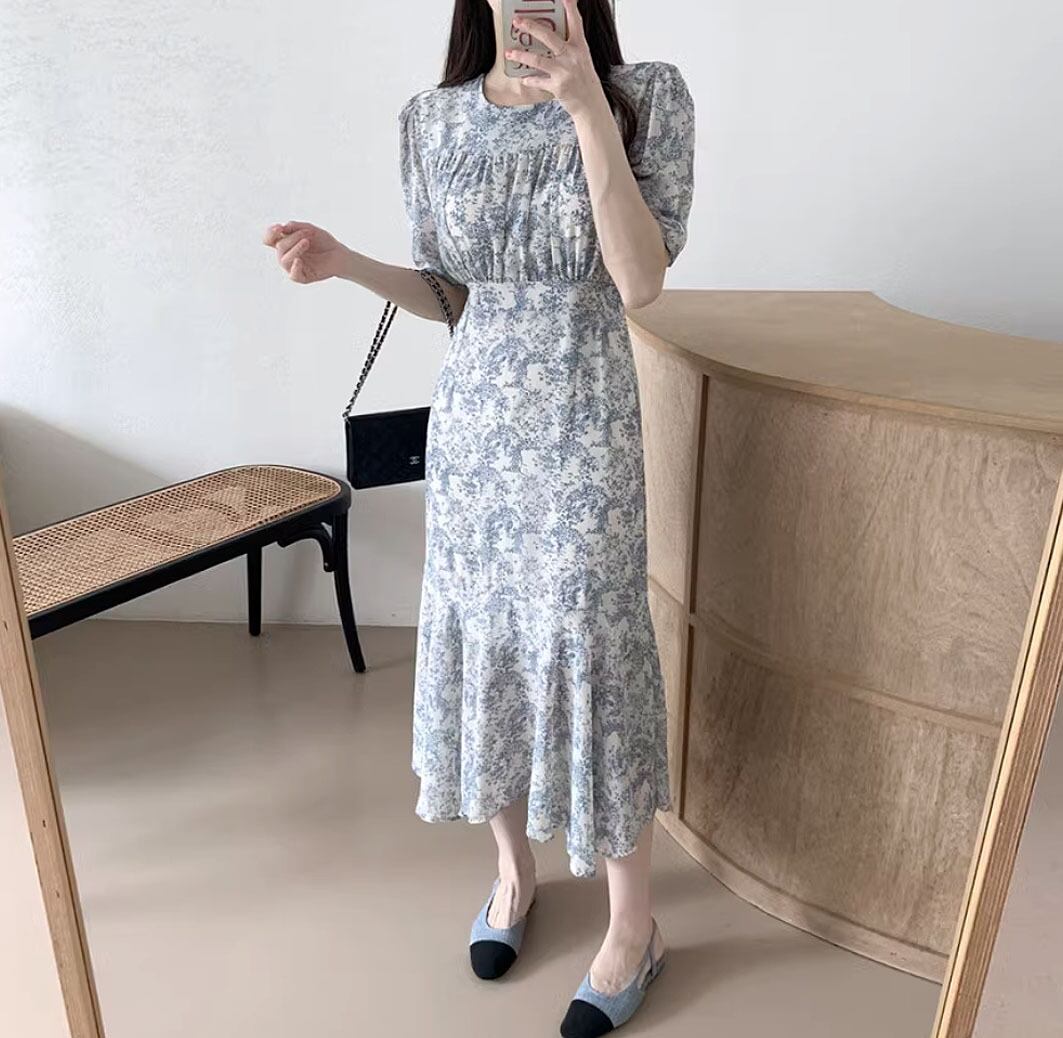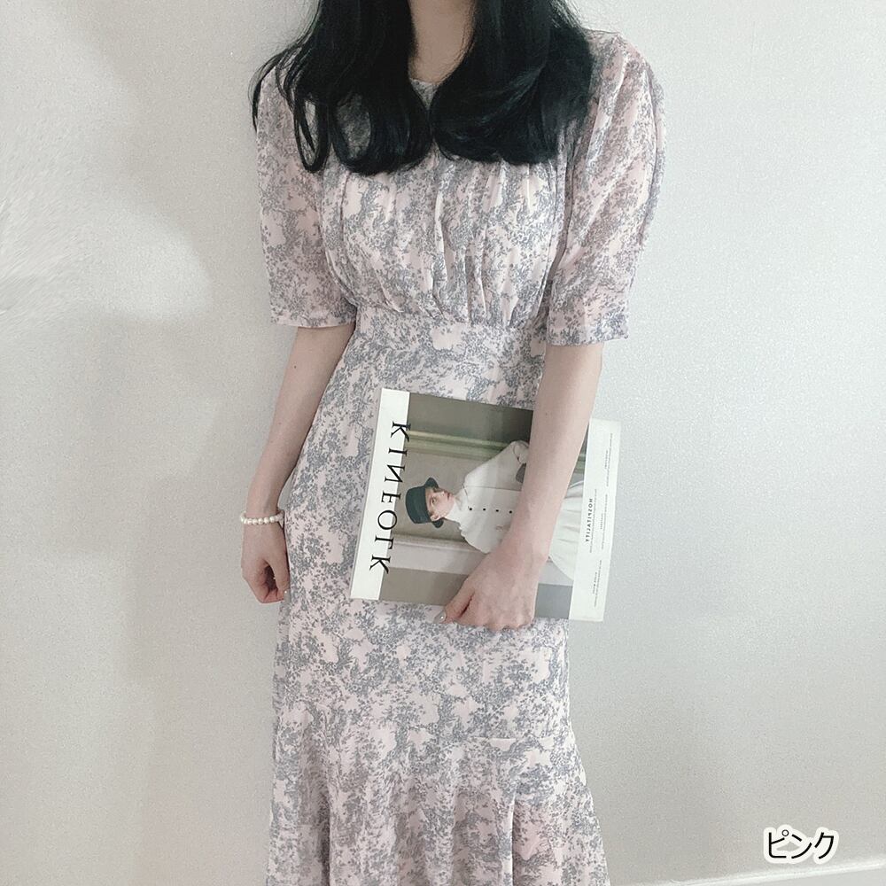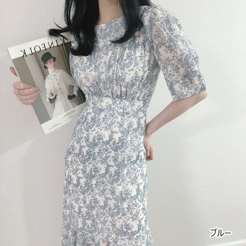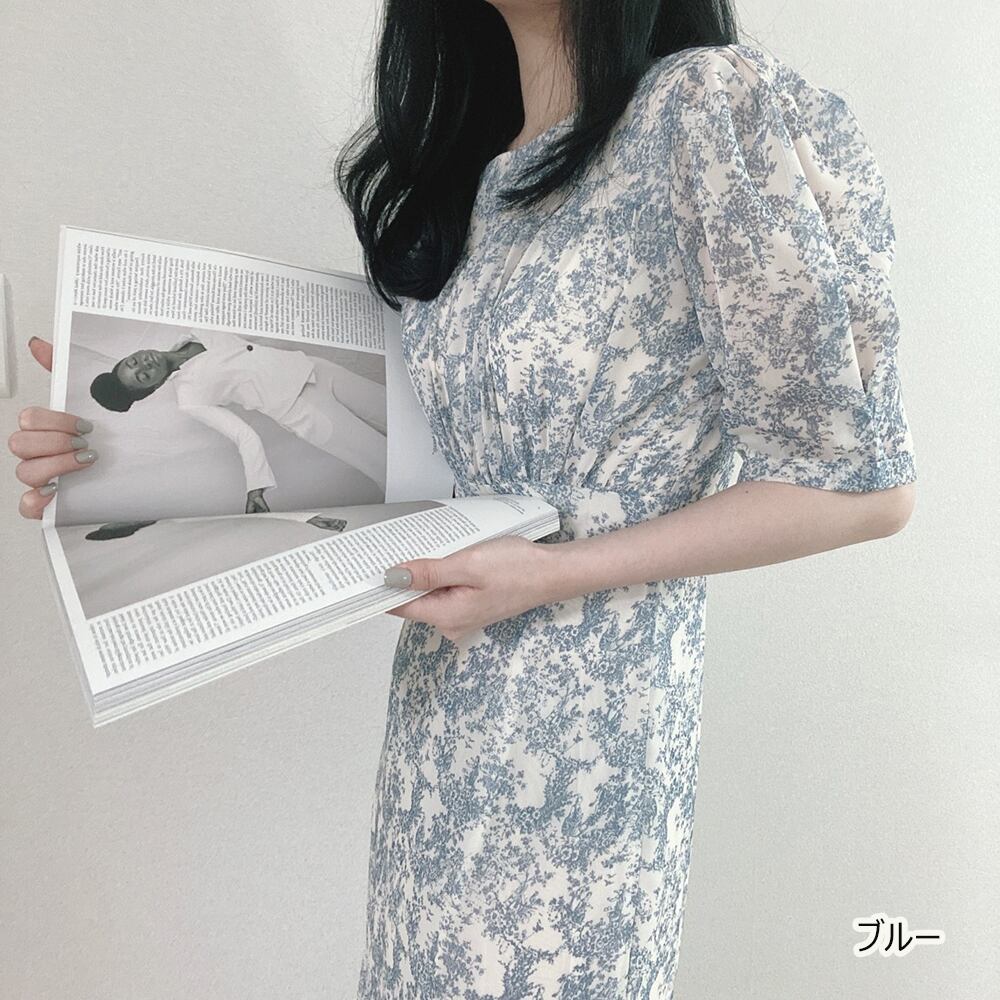 全2色 シャーリングシフォンワンピース トワルドジュイ フレア ハイウエスト Aライン ワンピース フレアワンピース 膝下 ロング ミモレ ミモレ丈 袖あり 半袖 Aライン シフォン 上品 胸元シャーリング ウエストタック おしゃれ お洒落 大人女子 ラブリー キュート ガーリー 透け感 主役級 存在感 春 夏 秋 冬 10代 20代 30代 レディース ママ 学生 OL デート お出かけ 通勤 インスタ映え ブルー ピンク 韓国コーデ 韓国ファッション