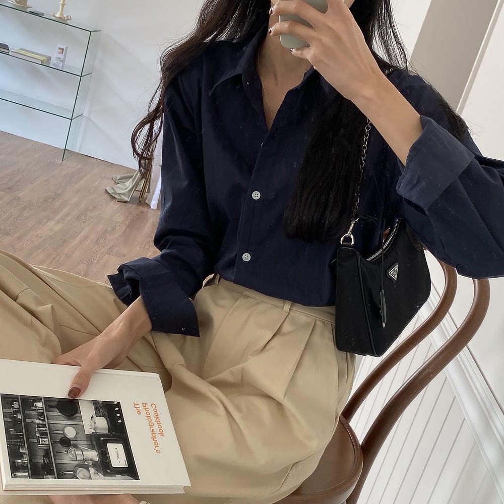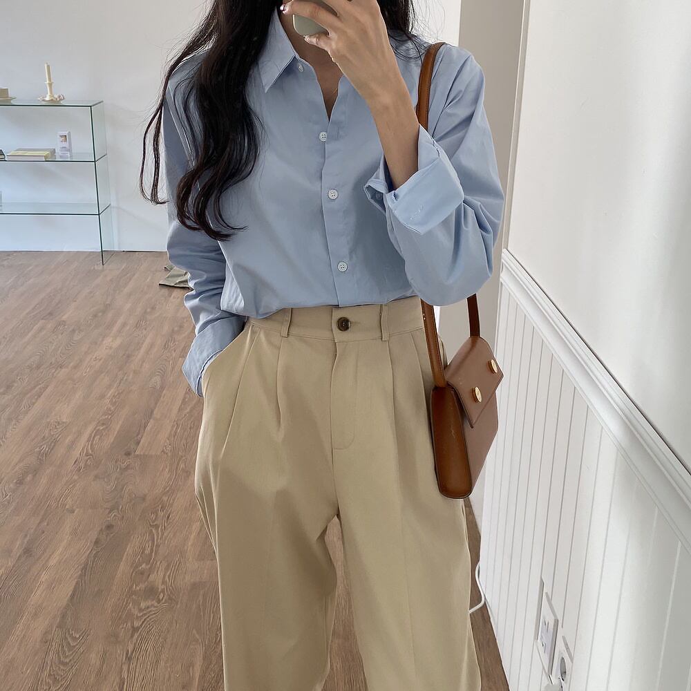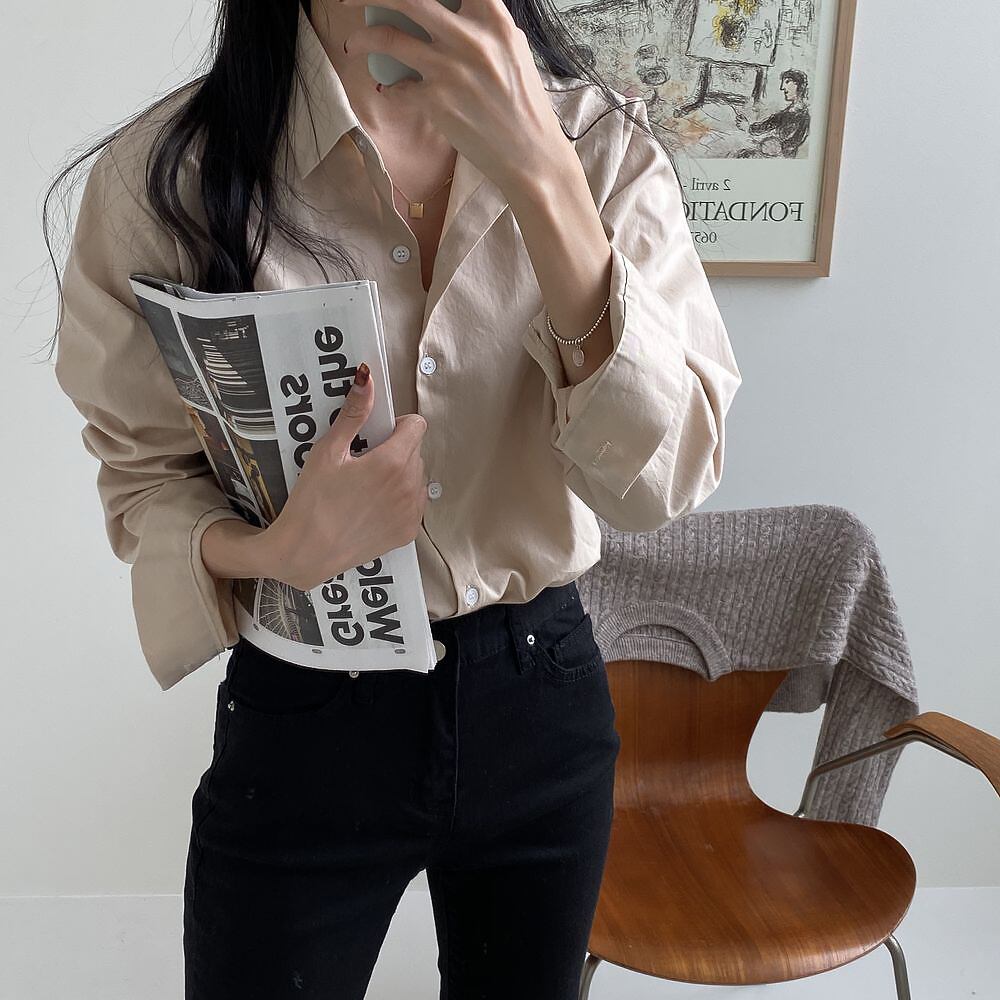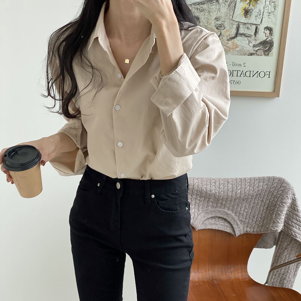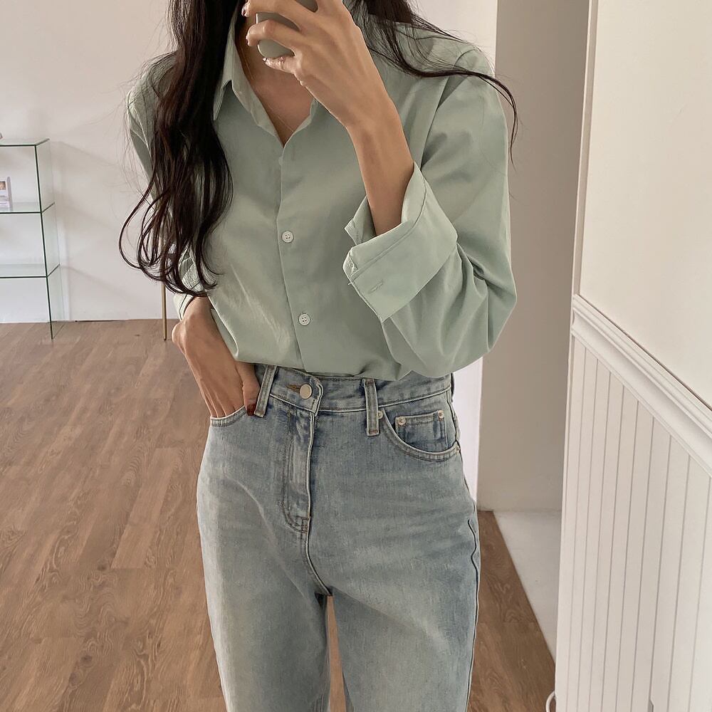 全5色 超シンプル ベーシックカラーシャツ 長袖 襟付き 前開き 大人可愛い きれいめ シンプル カジュアル 大人 上品 おしゃれ 大人女子 こなれ感 ラフ フォーマル 無地 春 秋 10代 20代 30代 レディース オフィス ビジネス OL 通勤 学生 通学 お出かけ 着回し 普段使い 重ね着 韓国 オルチャン ファッション コーデ スタイル フリーサイズ ホワイト ネイビー アイスブルー ライトグリーン ライトモカ 韓国コーデ 韓国ファッション