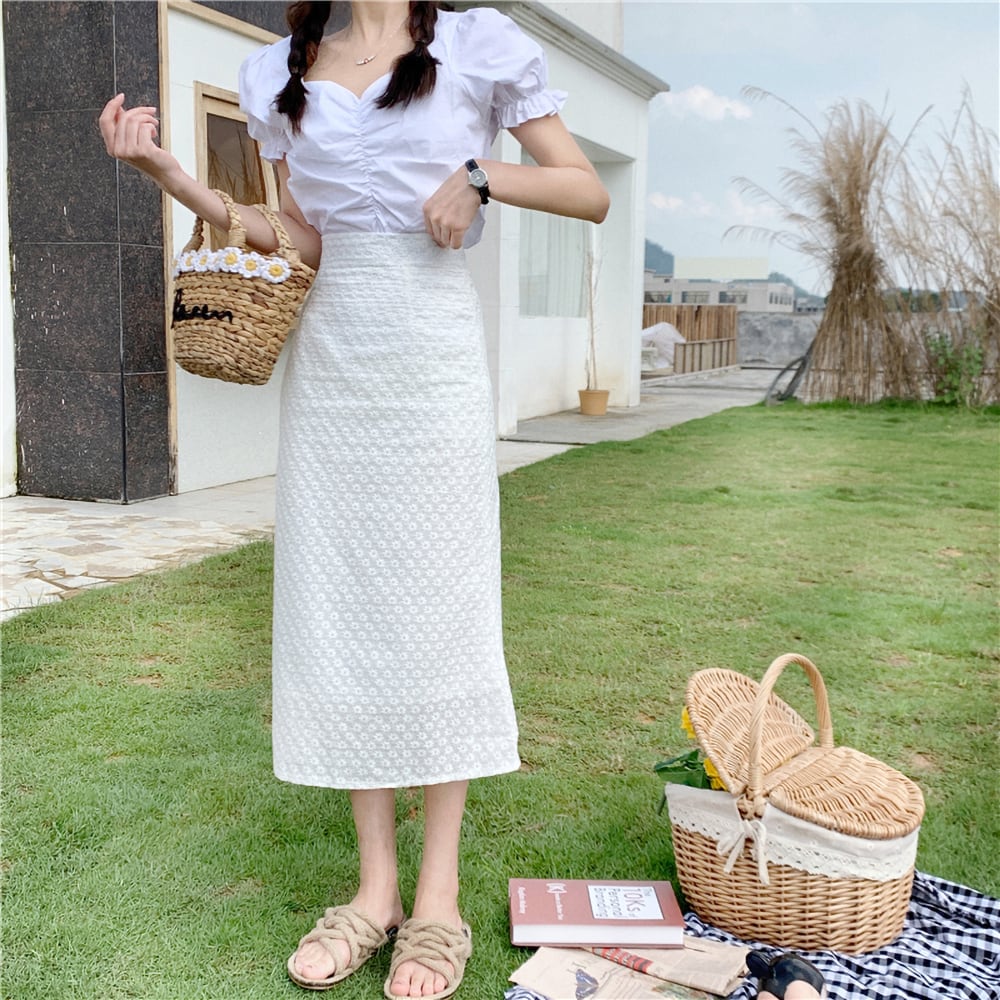コットンレースセミタイトスカート レディース 刺しゅう ライトフレアスカート ロングスカート ハイウエスト タイトスカート 着やせ 刺繍 スリム 着痩せ レース sweet系 タイトロングスカート コットンレース かわいい 大人可愛い きれいめ 大人 上品 おしゃれ お洒落 レトロ 大人女子 ラブリー キュート ガーリー エレガント 主役級 存在感 無地 レディース ママ オフィス ビジネス OL 通勤 学生 通学 デート お出かけ 旅行 着回し 普段使い モテ 韓国コーデ 韓国ファッション 白