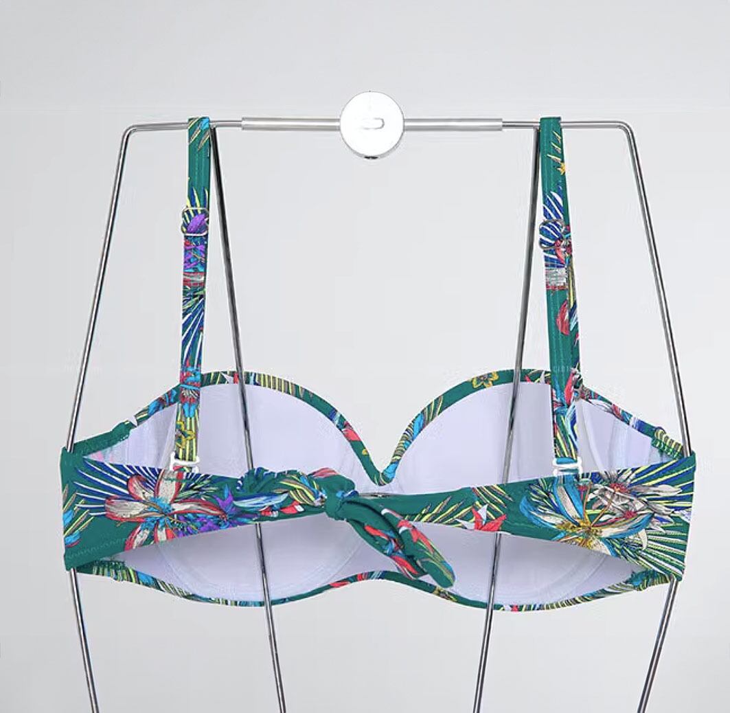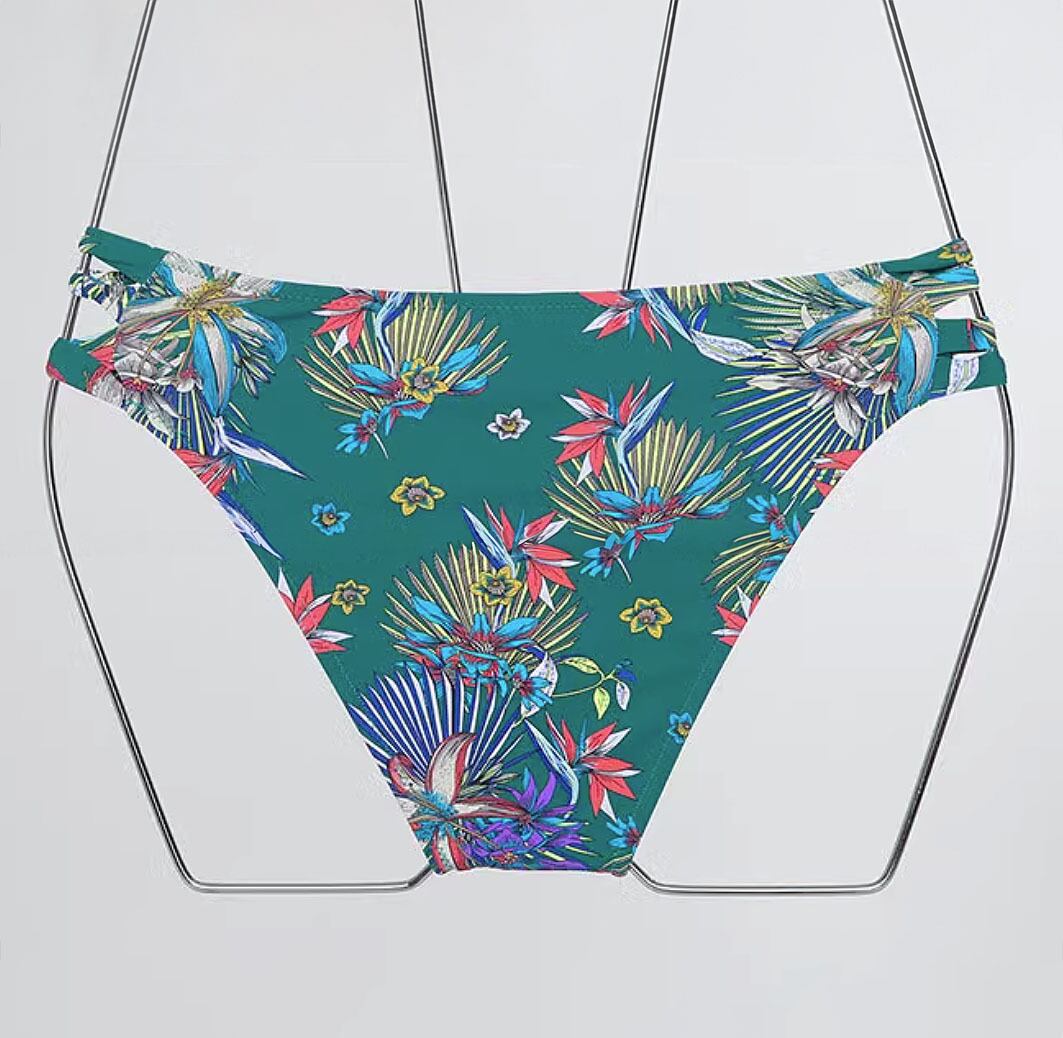 水着 ビキニ バックリボンサイドカットビキニ フラワープリント ビキニ 花柄 ストレリチア 極楽鳥花 ボタニカルプリント 南国プリント ハワイアンプリント スイムウェア セパレート リーフプリント パッド付き ワイヤーあり 大人っぽい 色っぽい ボトムサイド紐 かわいい 大人可愛い 盛り 寄せ 体型カバー 胸寄せ きれいめ セクシー sexy シンプル 華やか おしゃれ スタイリッシュ モダン エキゾチック 美脚 脚長 バカンス プール 海 韓国コーデ 韓国ファション グリーン