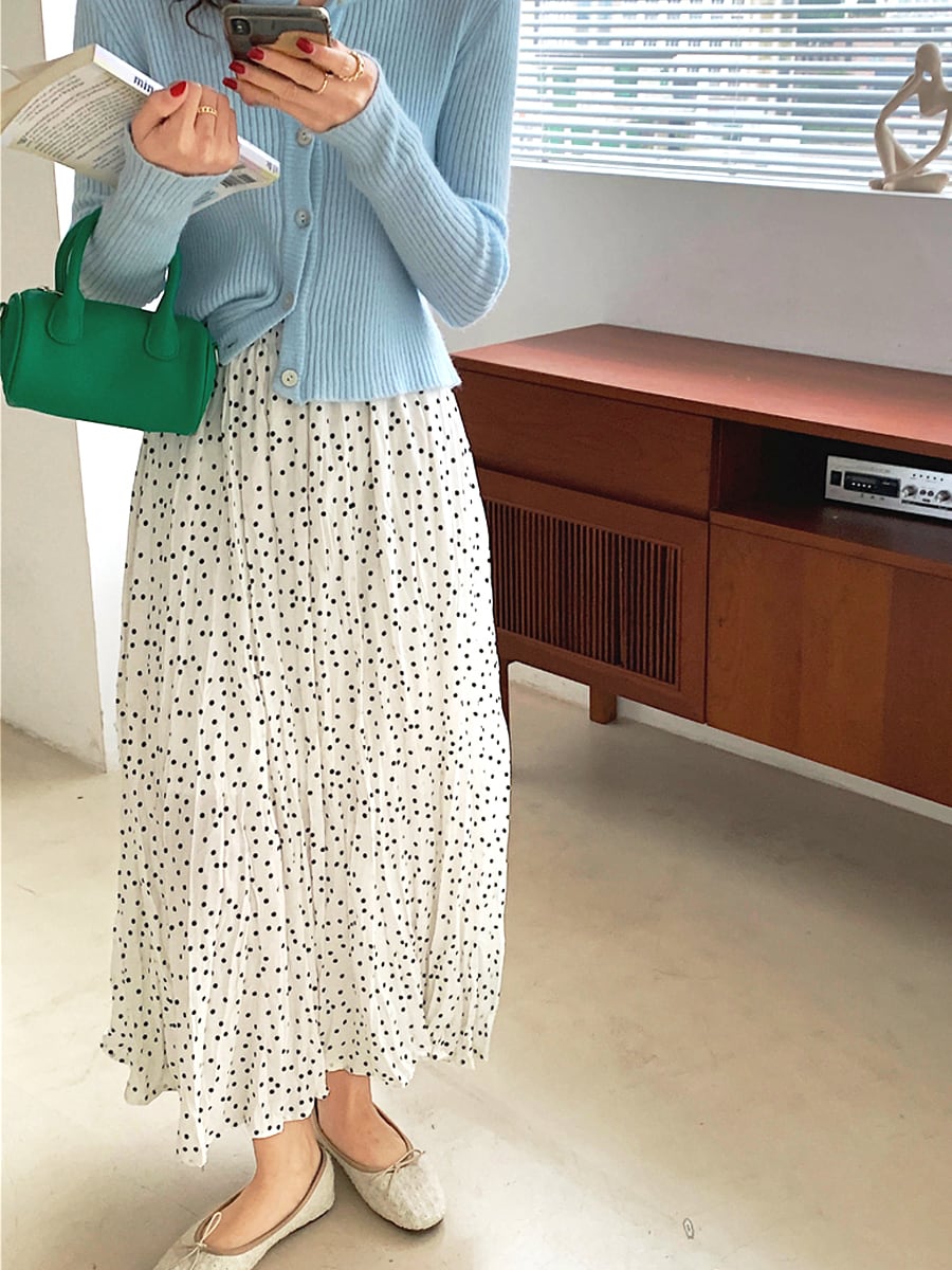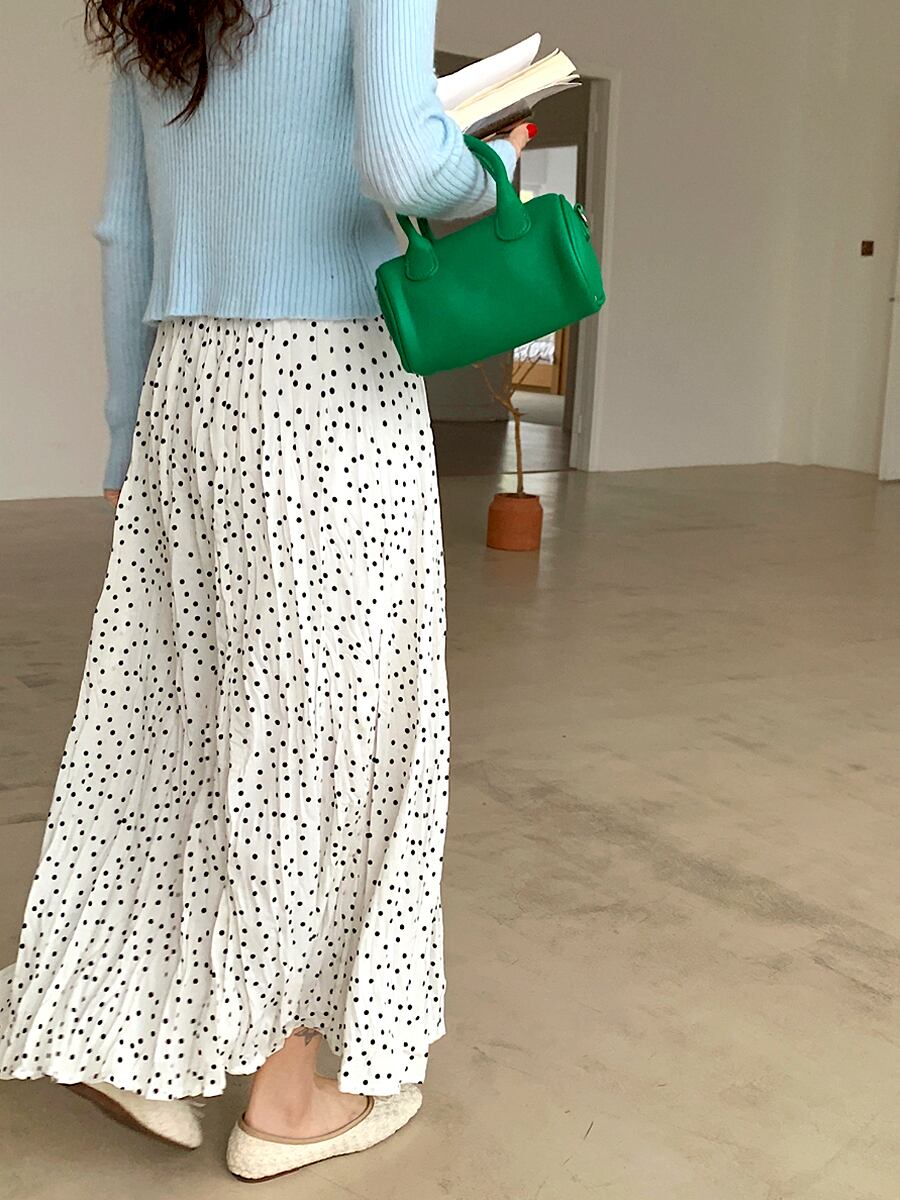 全4色 ワッシャーロングスカート ドット柄 スカート イージースカート ウエストゴム ロング ロング丈 セミフレア ドットプリント かわいい 大人可愛い きれいめ シンプル カジュアル おしゃれ お洒落 大人女子 ラフ シワ加工 かっこいい こなれ感 ラブリー キュート ガーリー モード系 エレガント 主役級 存在感 レディース ママ オフィス ビジネス OL 通勤 学生 通学 デート お出かけ 旅行 着回し 普段使い モテ 韓国コーデ 韓国ファッション 白 黒 緑 茶色