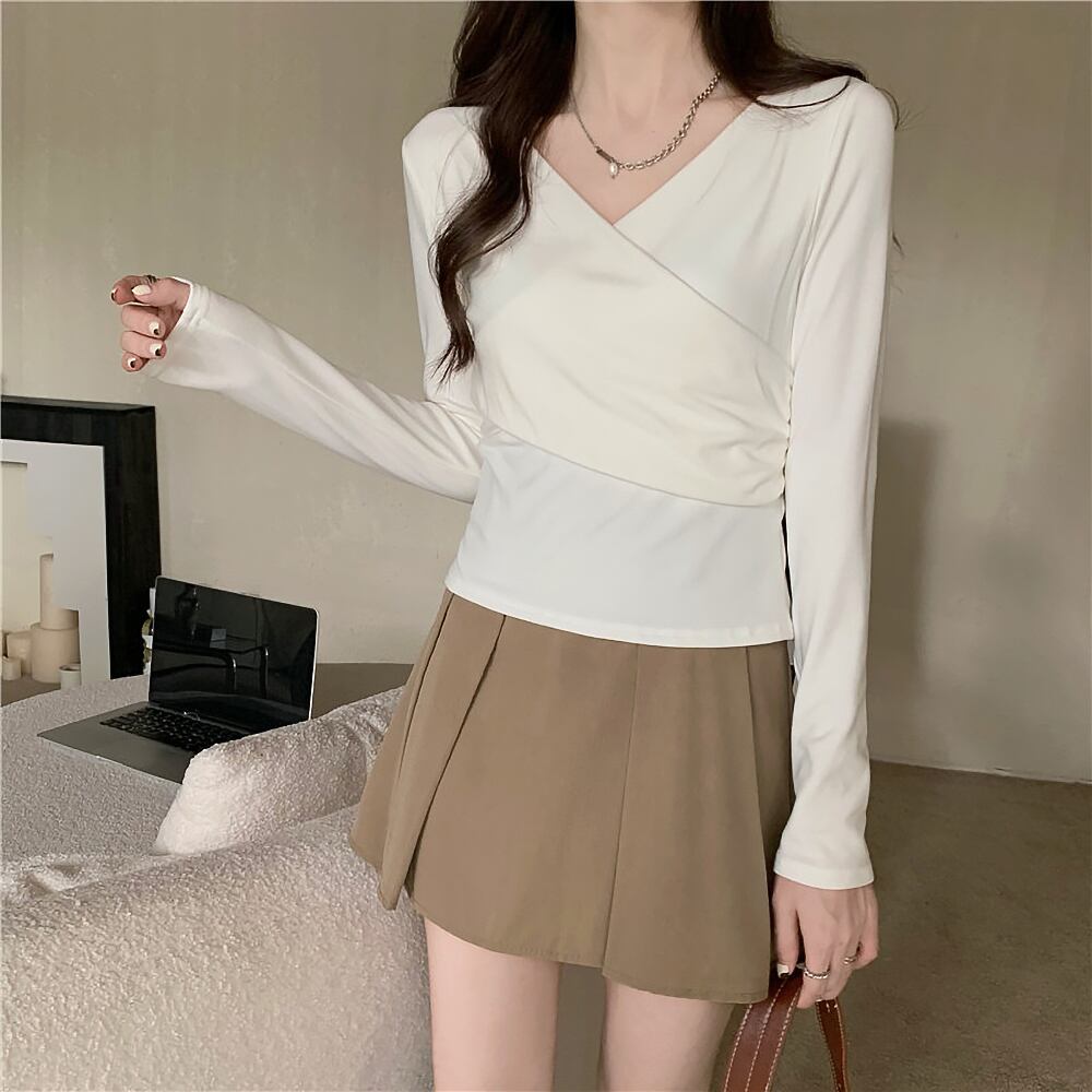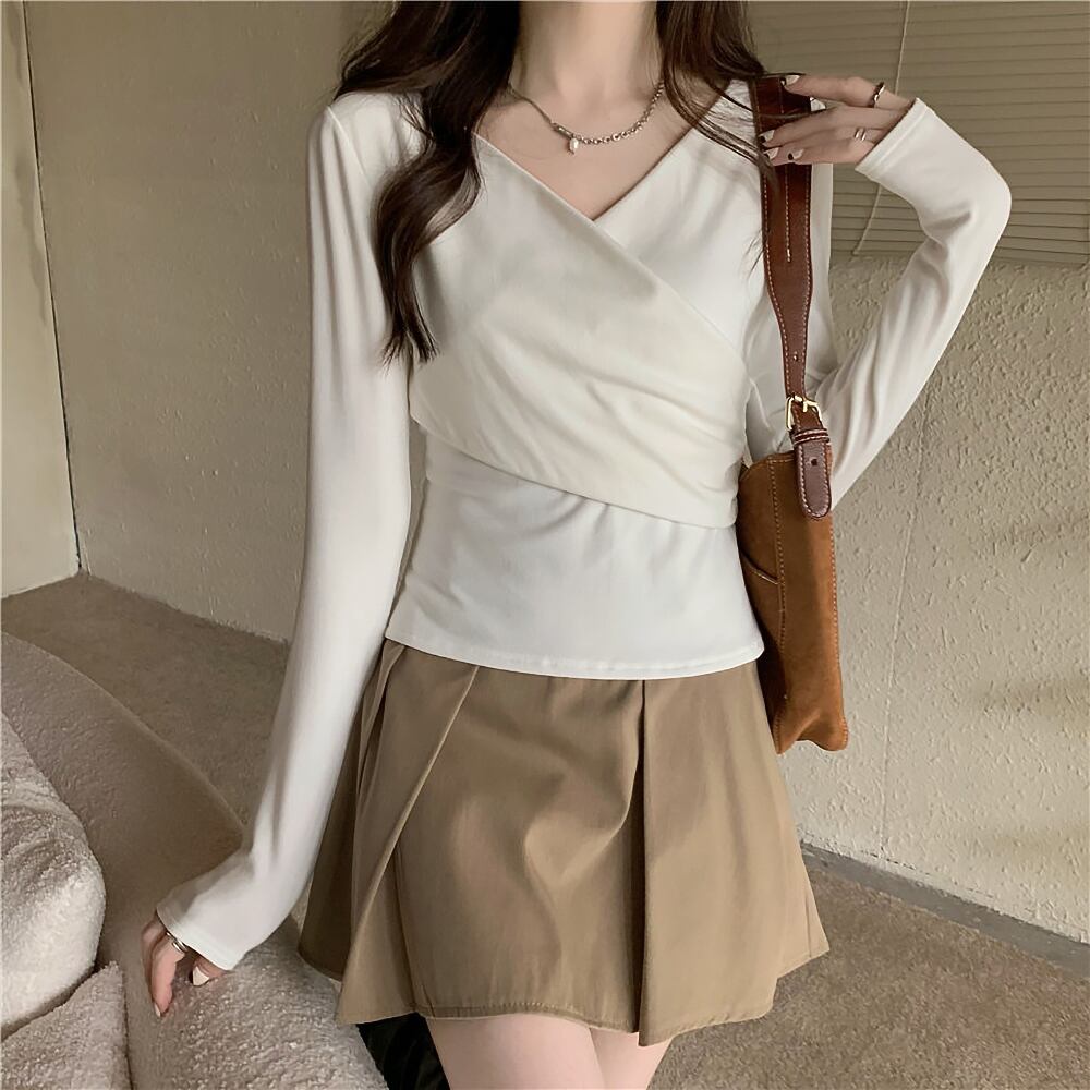 全3色 あったか 裏起毛 鎖骨見せ カットソー デコルテ魅せ 斜め切替え トップス Tシャツ ミディアム丈 袖あり 長袖 Vネック カシュクール スマート 切り替えデザイン 裏起毛 きれいめ シンプル カジュアル 大人 上品 おしゃれ お洒落 無地 秋 冬 レディース 女性用 ママ 女の子 OL 通勤 学生 通学 デート お出かけ 女子会 休日 着回し 普段使い 重ね着 韓国系 オルチャン ファッション コーデ スタイル 暖かい 防寒 大きいサイズ 白 黒 カーキ 韓国コーデ 韓国ファッション