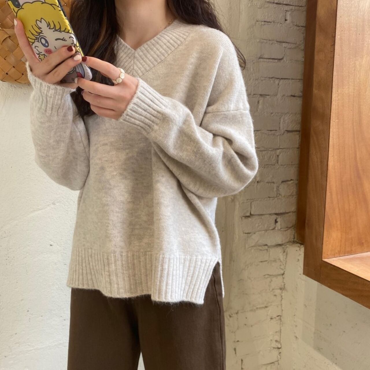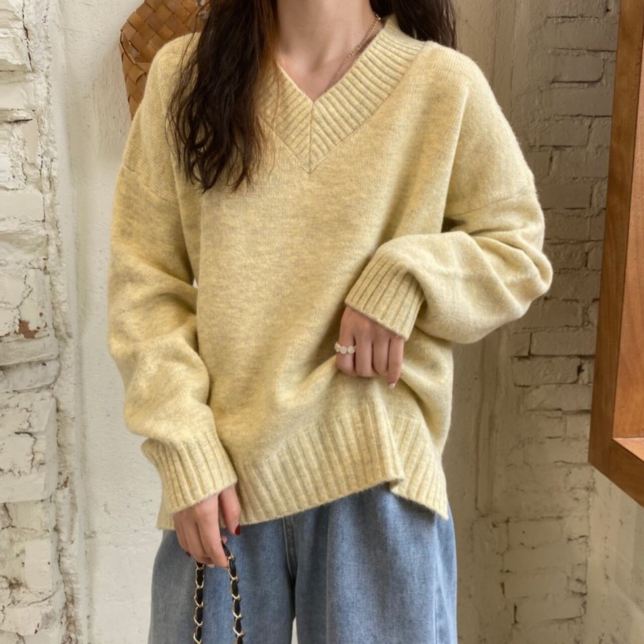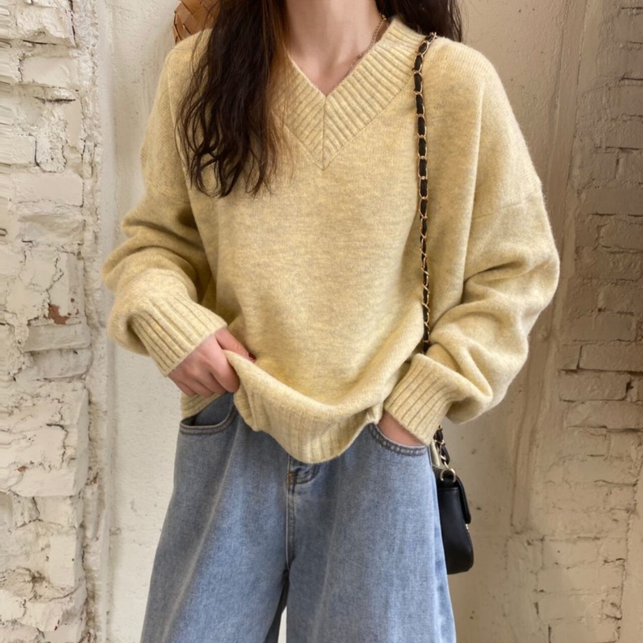 全4色 Vネックスリットセーター 袖あり 長袖 横スリット Vネック 襟なし 伸縮性 かわいい 大人可愛い シンプル カジュアル 大人 おしゃれ 大人女子 こなれ感 ラフ キュート ルーズ 存在感 無地 秋 冬 10代 20代 30代 レディース 学生 通学 デート お出かけ 公園デビュー 女子会 休日 着回し 普段使い 重ね着 韓国 オルチャン ファッション コーデ スタイル フリーサイズ 大きめ ゆったり イエロー ピンク クリーム アイスブルー 韓国コーデ 韓国ファッション