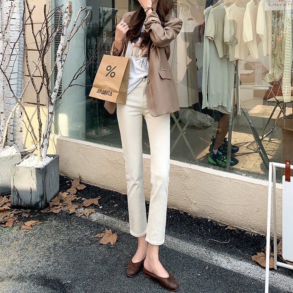 全3色 長さ2種 ストレッチパンツ デニムパンツ 九分丈 八分丈 ロング丈 大きいサイズ 小さいサイズ ジーパン ストレートパンツ シンプル カジュアル おしゃれ お洒落 かっこいい こなれ感 ボタン デニム ガーリー モード系 エレガント 主役級 存在感 無地 春 夏 10代 20代 30代 40代 レディース ママ オフィス ビジネス OL 通勤 学生 通学 デート お出かけ 旅行 着回し 普段使い モテ ブラック ホワイト ベージュ ブラック 韓国コーデ 韓国ファッション