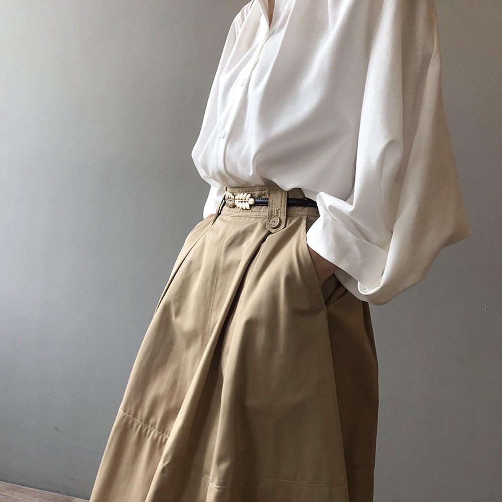 膝が隠れる定番の丈で 程よいフレア感があるので女性らしさが引き立ちます。