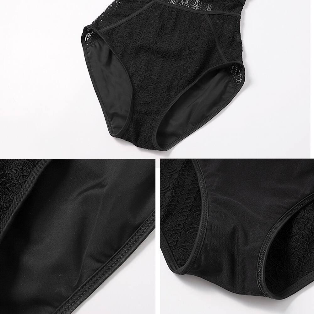 ウエストとサイドがレトロなレースで透けているセクシーなワンピース水着と同じレースで作られたカーディガンとのセット商品です。