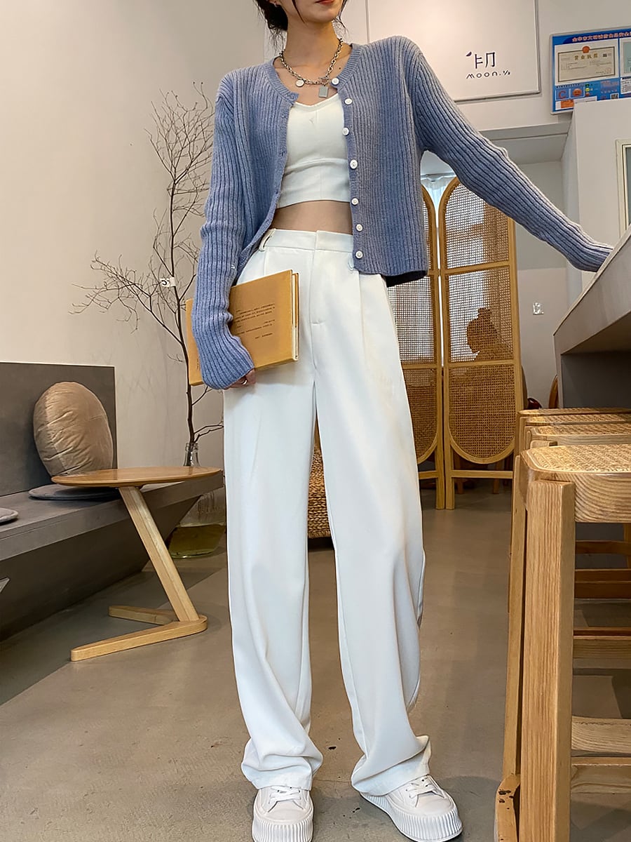 脚のラインを強調せずすらっと足長見せが狙えるワイドレッグデザインのハイウエストパンツ。