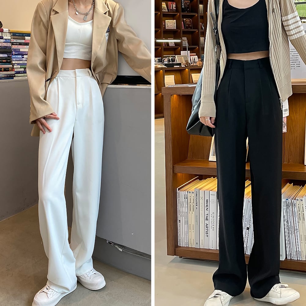 全2色 ワイドレッグパンツ ボトムス パンツ ロング丈 フルレングス ストレート サイドポケット 透けない白 バックウエストゴム ハイウエスト シンプル カジュアル きれいめ 大人っぽい 上品 おしゃれ お洒落 こなれ感 合わせやすい 無地 春 秋 レディース 女性用 ママ 女の子 OL 通勤 学生 通学 デート スタイルアップ 着回し 普段使い 韓国系 オルチャ 体系カバー 脚長 S M L XL XXL 大きいサイズ 白 黒 韓国コーデ 韓国ファッション