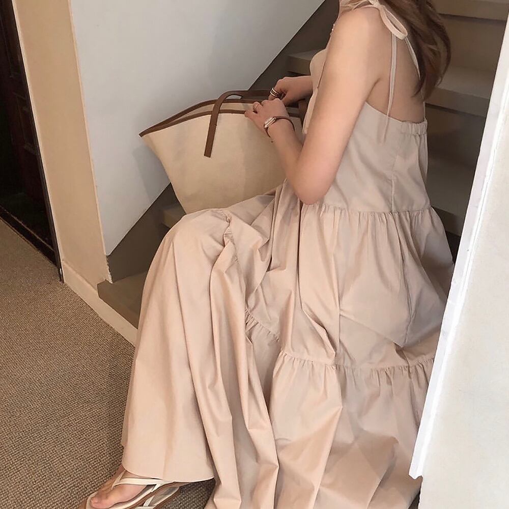 全3色 キャミソールワンピース ティアードワンピース ショルダーリボン ロング ロングワンピース フレア ワイド 無地 楽ちん ロングフレア 夏ワンピ 夏ワンピース かわいい 大人可愛い きれいめ シンプル カジュアル 上品 おしゃれ お洒落 かっこいい レトロ 大人女子 こなれ感 ラフ ラブリー キュート ガーリー エレガント 無地 着回し 普段使い オルチャン 韓国コーデ 韓国ファッション グレー 灰色 黒 ブラック ベージュ