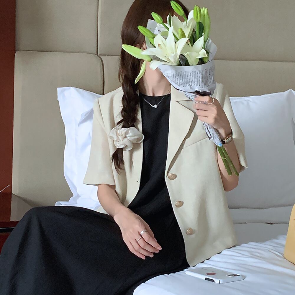 背中が少し空いておりすっきり見せてくれます。ジャケットを合わせてきるのもおすすです。