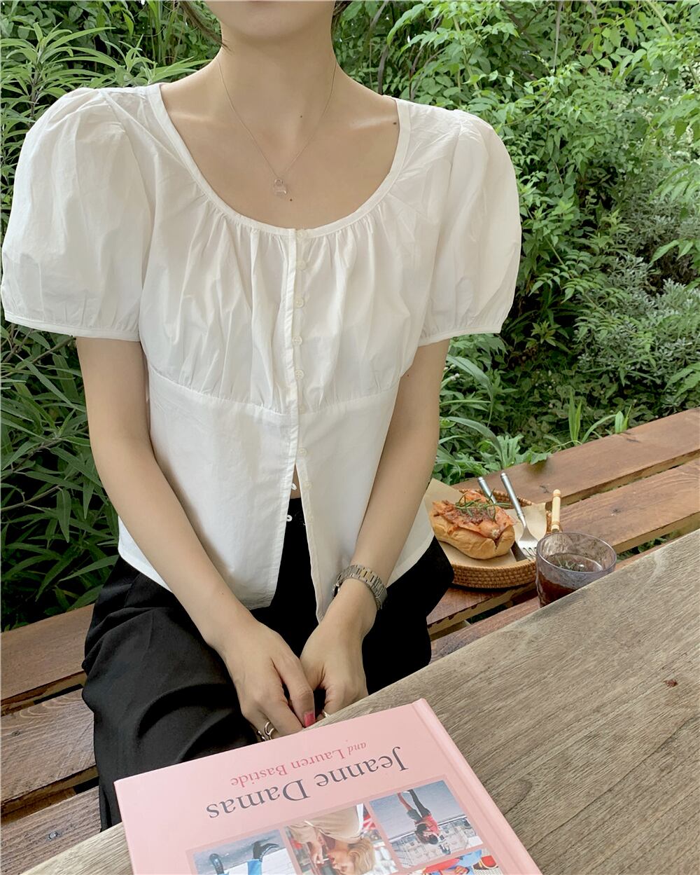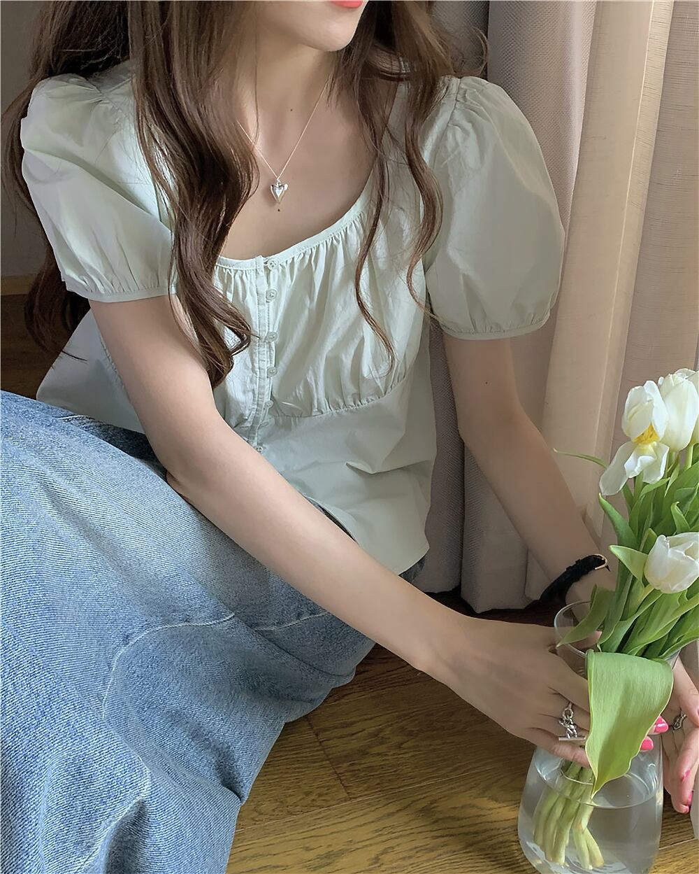 全2色 シャーリング半袖ブラウス 半袖 バブルスリーブ スクエアネック ボリューム袖 ブラウス 透け感 かわいい 大人可愛い きれいめ シンプル カジュアル 大人 おしゃれ 大人女子 こなれ感 ラフ キュート 主役級 存在感 無地 春 夏 10代 20代 30代 レディース 学生 通学 デート お出かけ 公園デビュー 女子会 休日 リゾート 旅行 海 プール 着回し 普段使い 重ね着 韓国 オルチャン コーデ ホワイト ライトグリーン 韓国コーデ 韓国ファッション