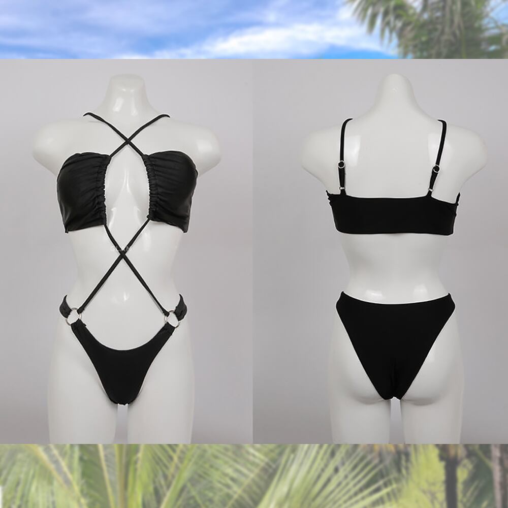 水着 クロスホルタービキニ ビキニ クリスクロスビキニ 眼帯ビキニ 露出多め 紐ビキニ ハイレグ フリル ホルターネック バッククロスストラップ 三角ビキニ マイクロビキニ ツーピース セパレート スイムウェア パッド付き ワイヤーなし 美脚 脚長カット レトロ モダン セクシー 大人 可愛い おしゃれ お洒落 女っぽ 個性的 レディース ホテル 温泉 海 ビーチ プール リゾート スタイルアップ 美スタイル 韓国 S M L XL 韓国コーデ 韓国ファッション ピンク ブラック 黒